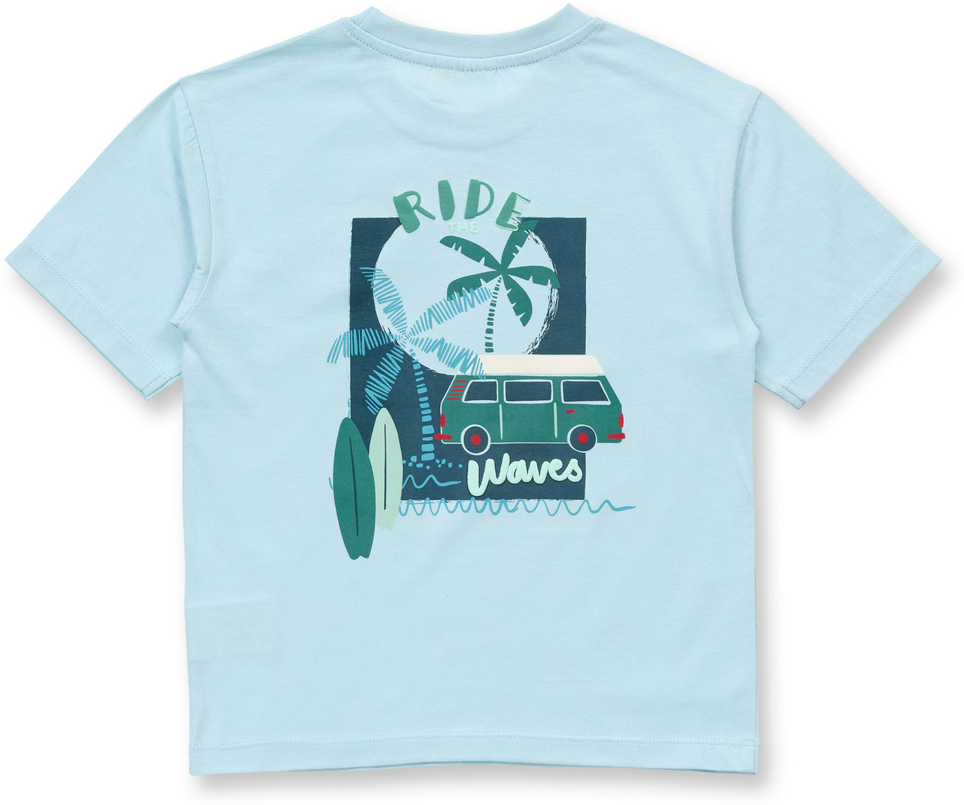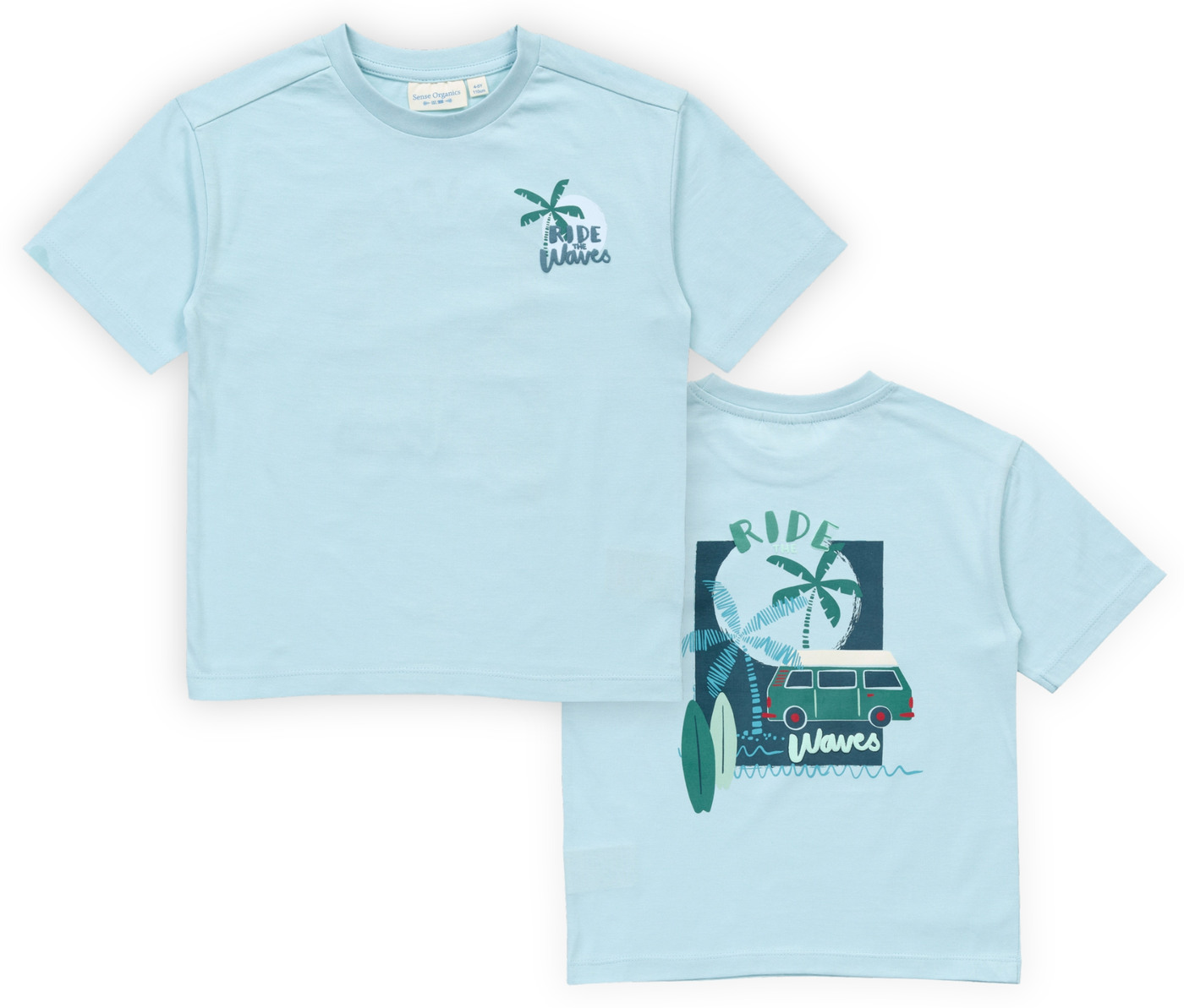 Sense Organics T-Shirt 'Oswin' mit Surfer-Bulli Print aus Bio-Baumwolle - Light Blue + Camper