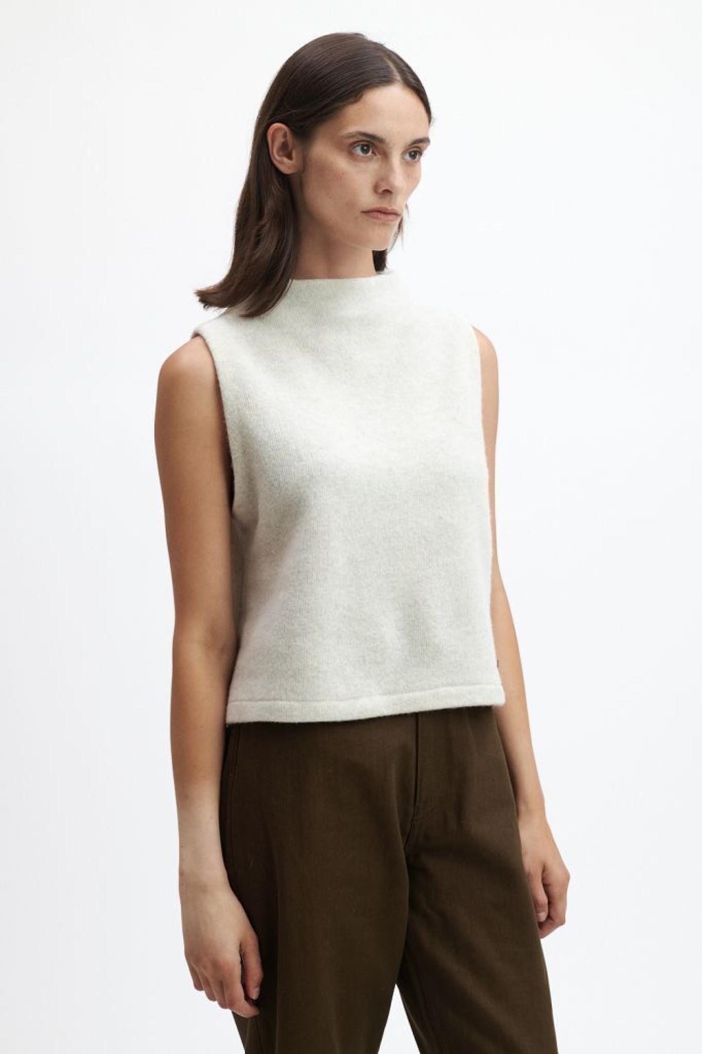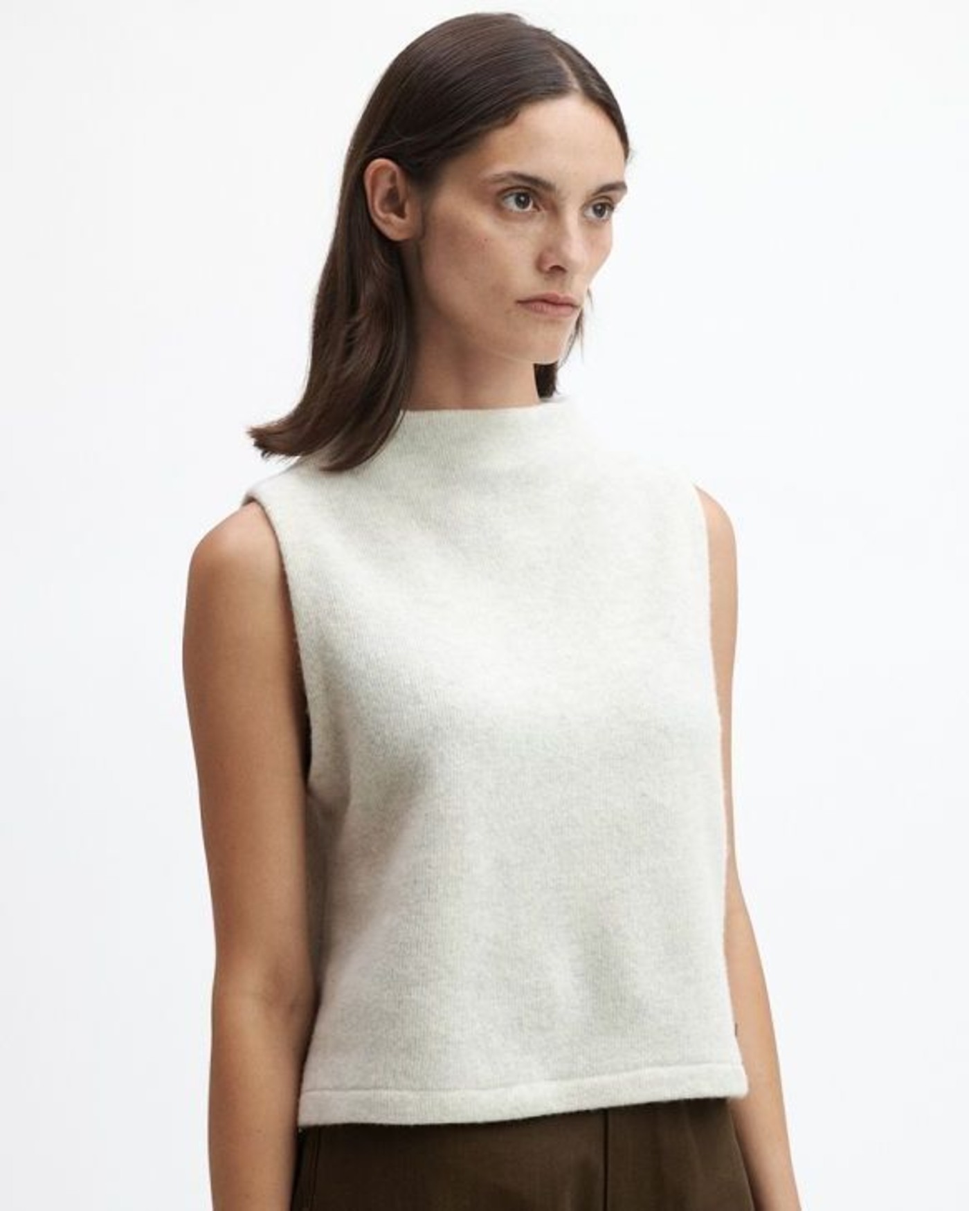 Der gerade geschnittene Pullunder 'Karla' von Stapf ist aus einer leichten, kuschel-weichen und feinen doppelgestrickten Kombination aus Lammwolle und Baumwolle gefertigt 🤍