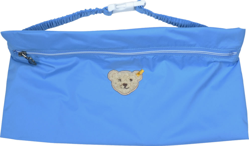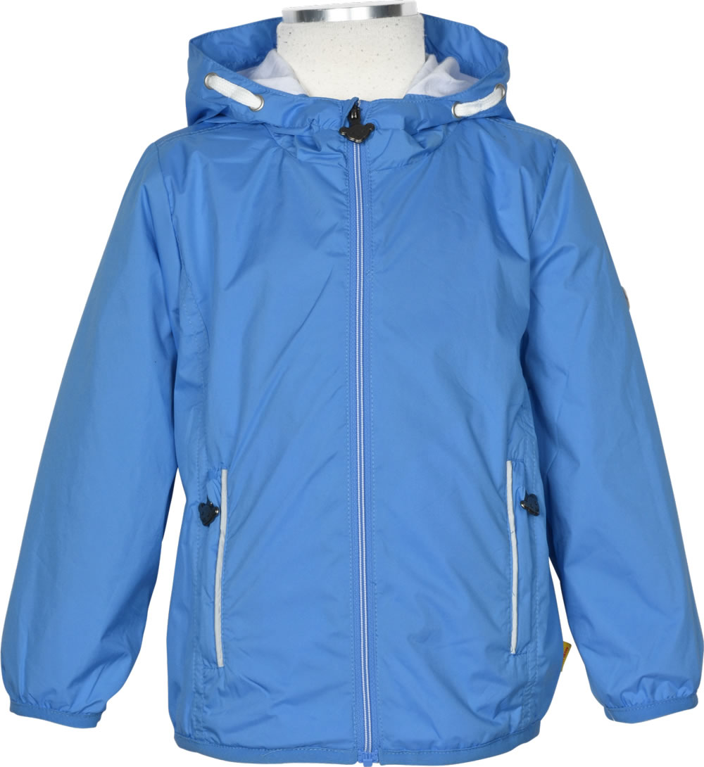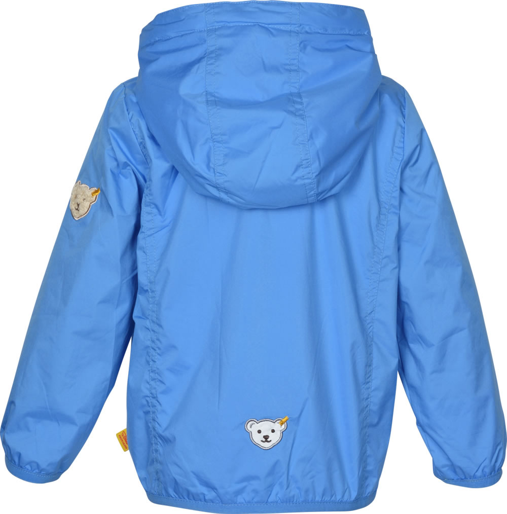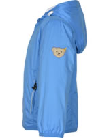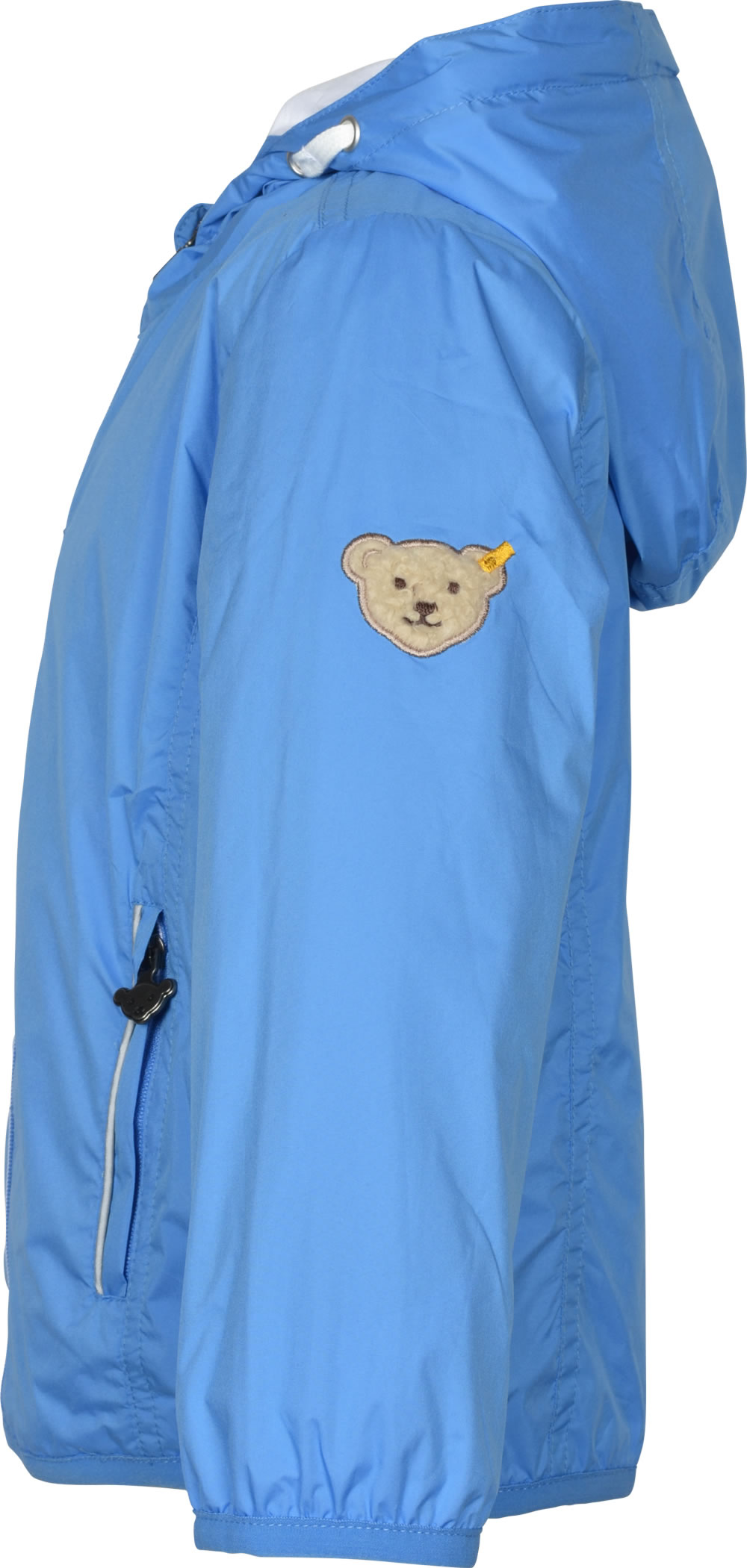 Leichte Sommer-Jacke in hellblau mit fester Kapuze von STEIFF für Jungen. Die Jackeninnenseite ist mit einem weichem Baumwoll-Futter in weiß ausgestattet. Am Reißverschluss, sowie an den Taschen befinden sich kleine STEIFF Bären als Zipper-Anhänger. Eine kleine STEIFF Teddy-Applikation ziert den linken Oberarm. Die hübsche Jacke ist gerade geschnitten und mit ihrer tollen Optik ein schöner Begleiter für die warme Jahreszeit. Ein schönes Extra ist die passende Bauchtasche, in die sich die Jacke verstauen lässt.