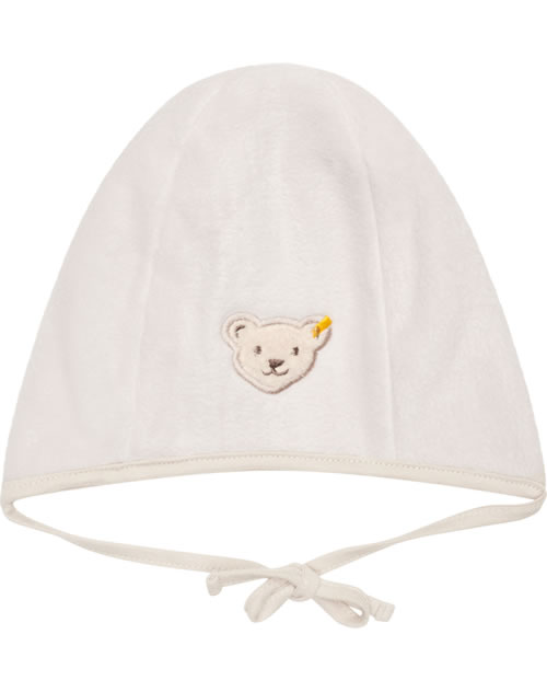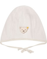Warme Baby-Mütze von STEIFF aus der Baby Wellness-Kollektion. Die Vorderseite ziert der kleine STEIFF Bär. Gefüttert ist die Mütze mit einem weichen Baumwoll-Jeersey.