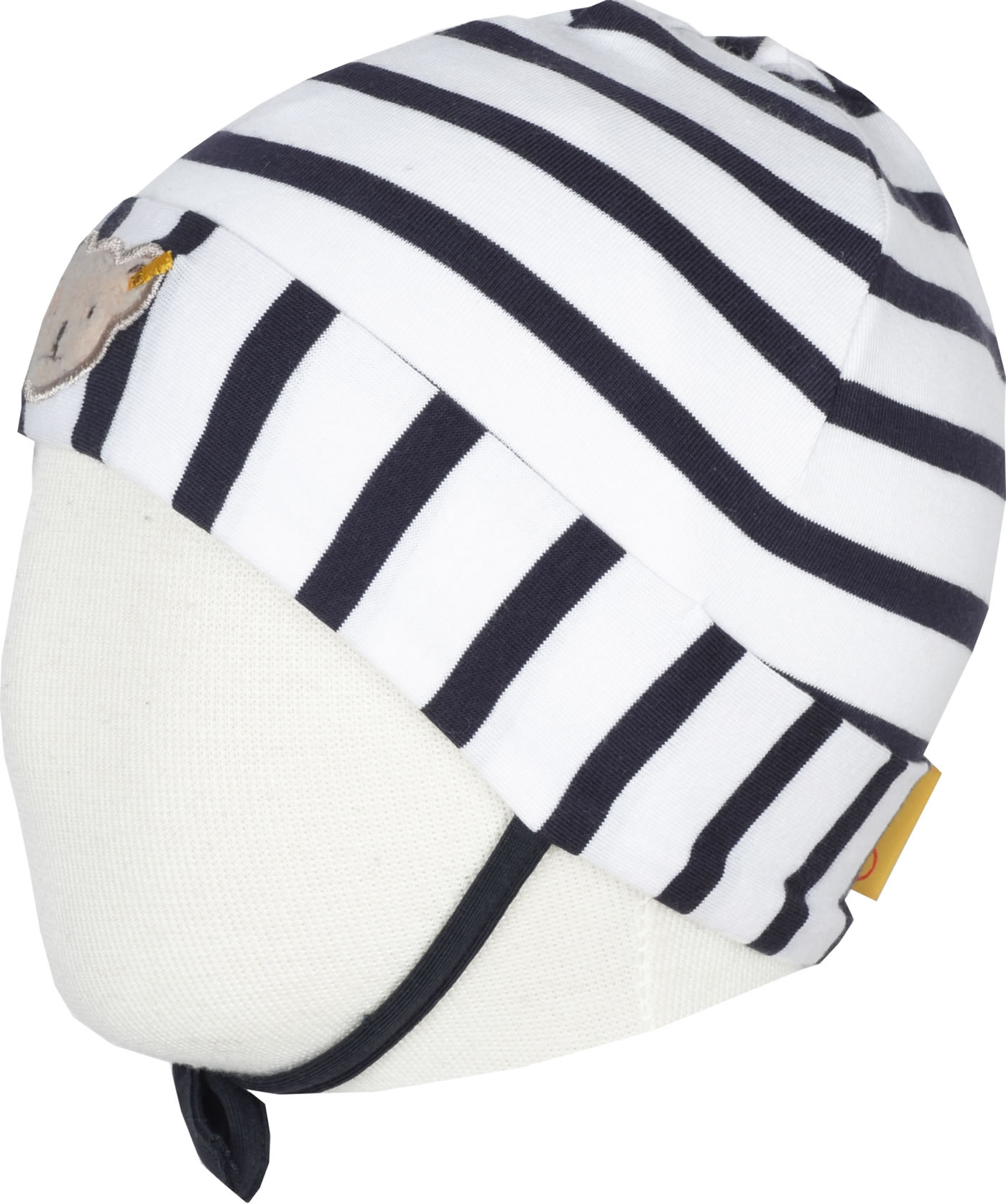 Doppellagige Jerseymütze von STEIFF aus der Marine Air-Kollektion für Mädchen. Die Vorderseite ziert der kleine STEIFF Bär. Das weiche Material bietet einen hohen Tragekomfort.