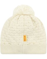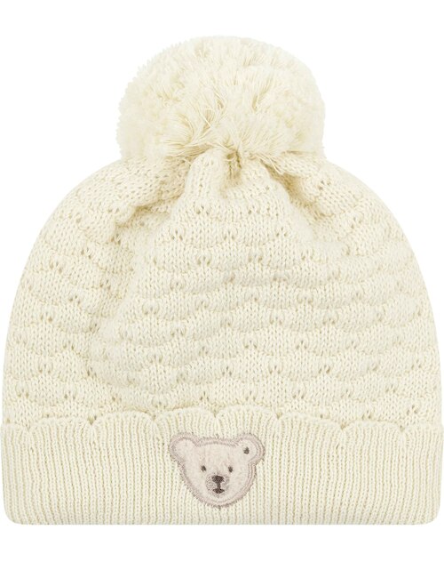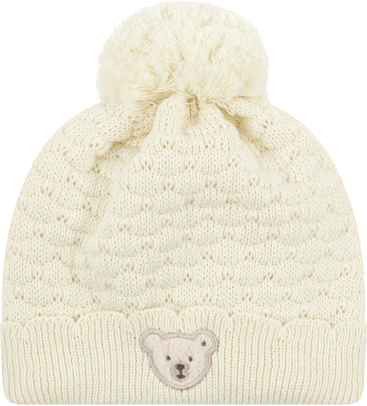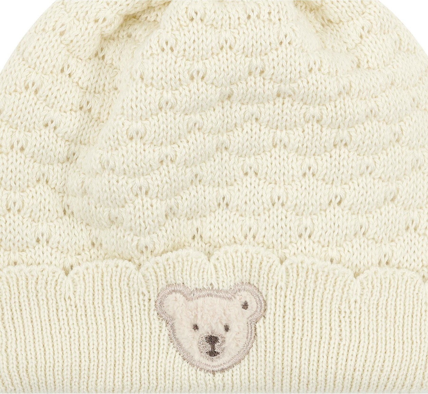 Steiff Baby-Strick-Mütze aus 100% Baumwolle mit Bommel - Eggnog
