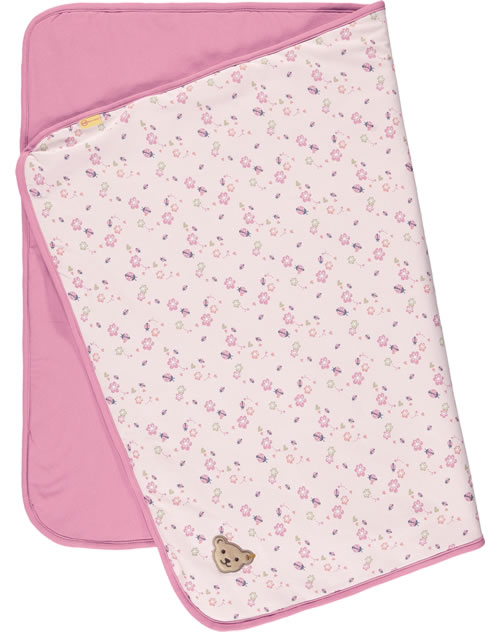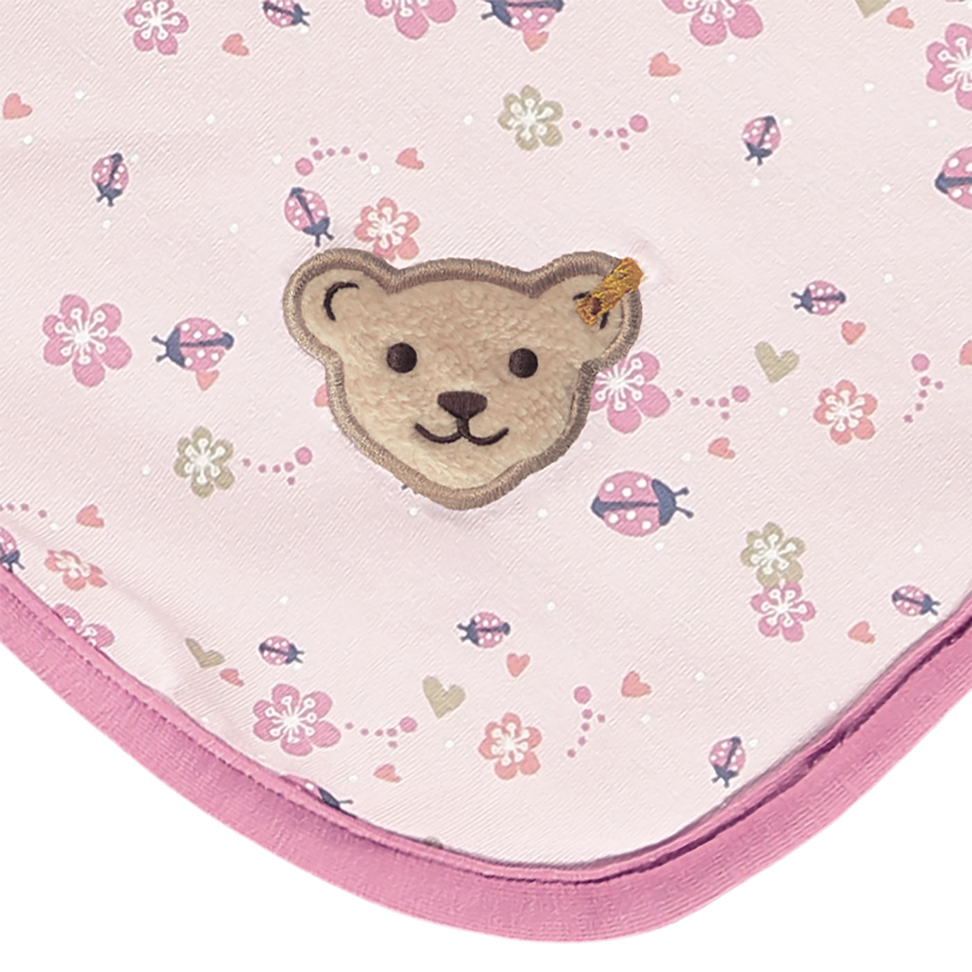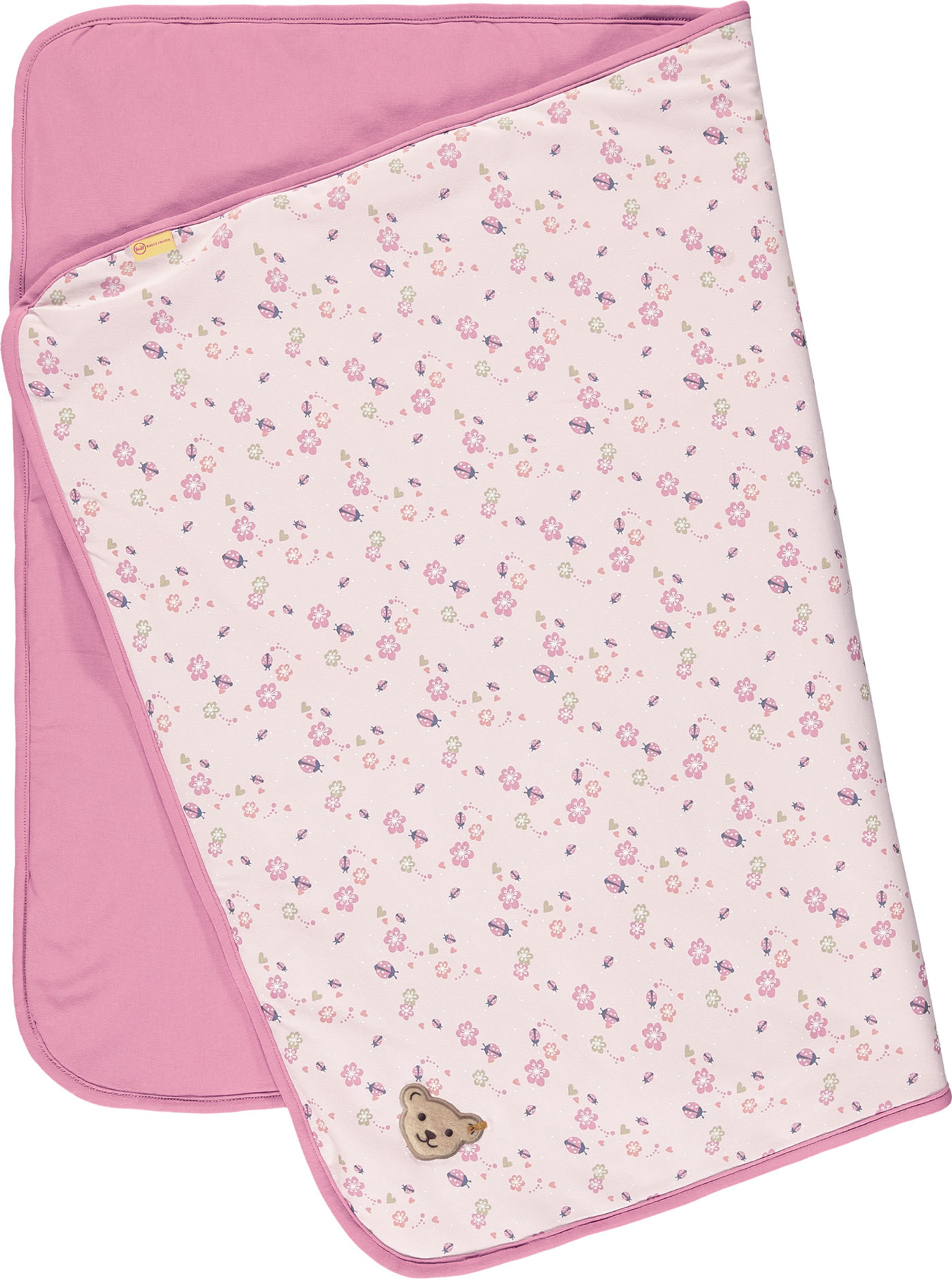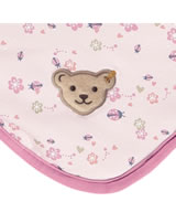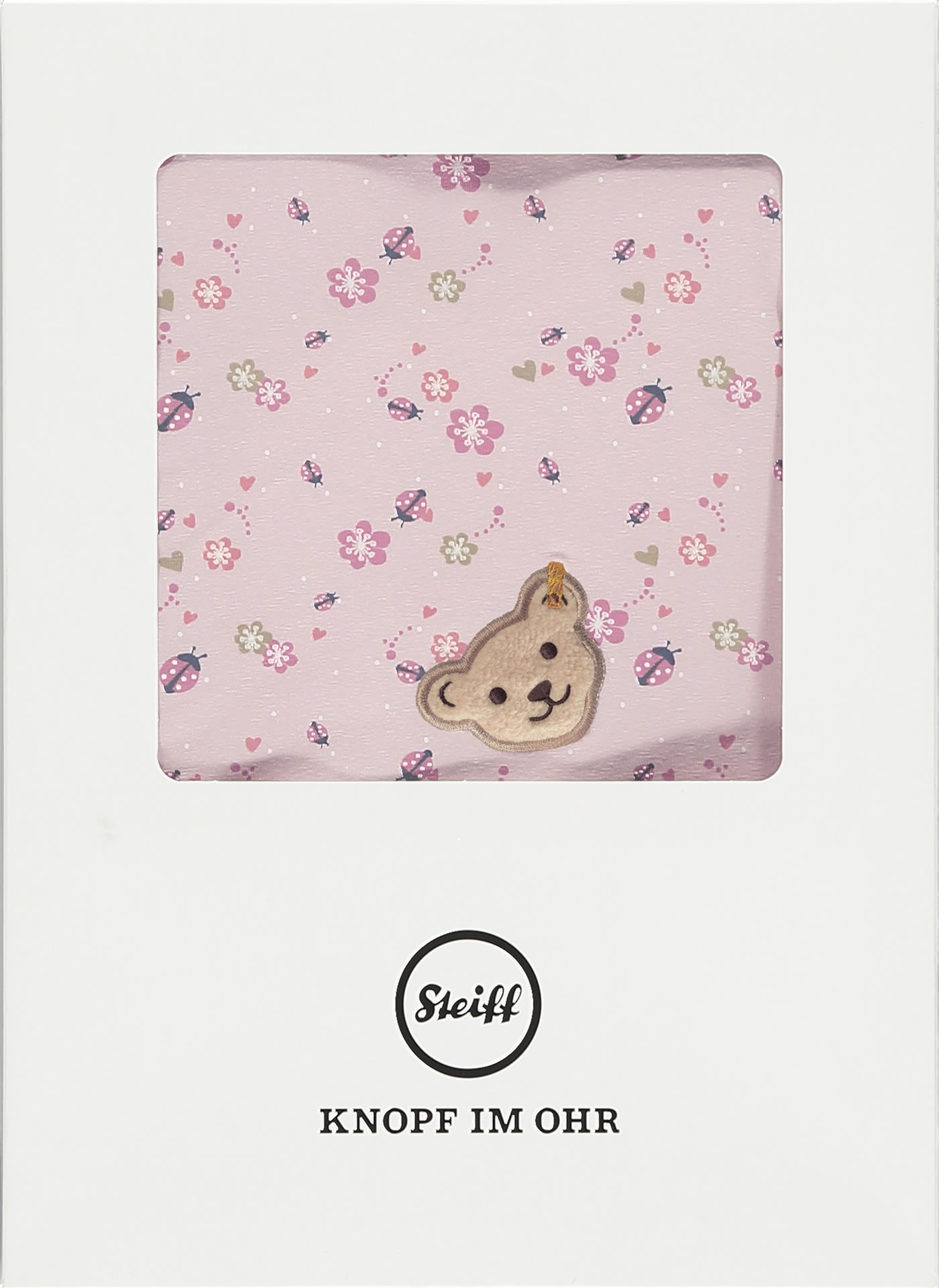 Der ideale Begleiter für das Baby - kuschelig weiche Krabbeldecke mit STEIFF Bärenkopf-Applikation auf einer Ecke. Die Decke hat auf der Oberseite ein tolles Muster aus Blumen und Marienkäfern und auf der Unterseite ein schönes STEIFF Bären Motiv.