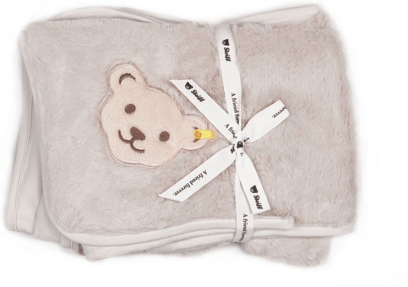 Der ideale Begleiter für das Baby - weiche Decke von STEIFF. Die kuschelige Plüschqualität ist komfortabel und strapazierfähig.