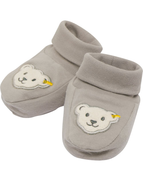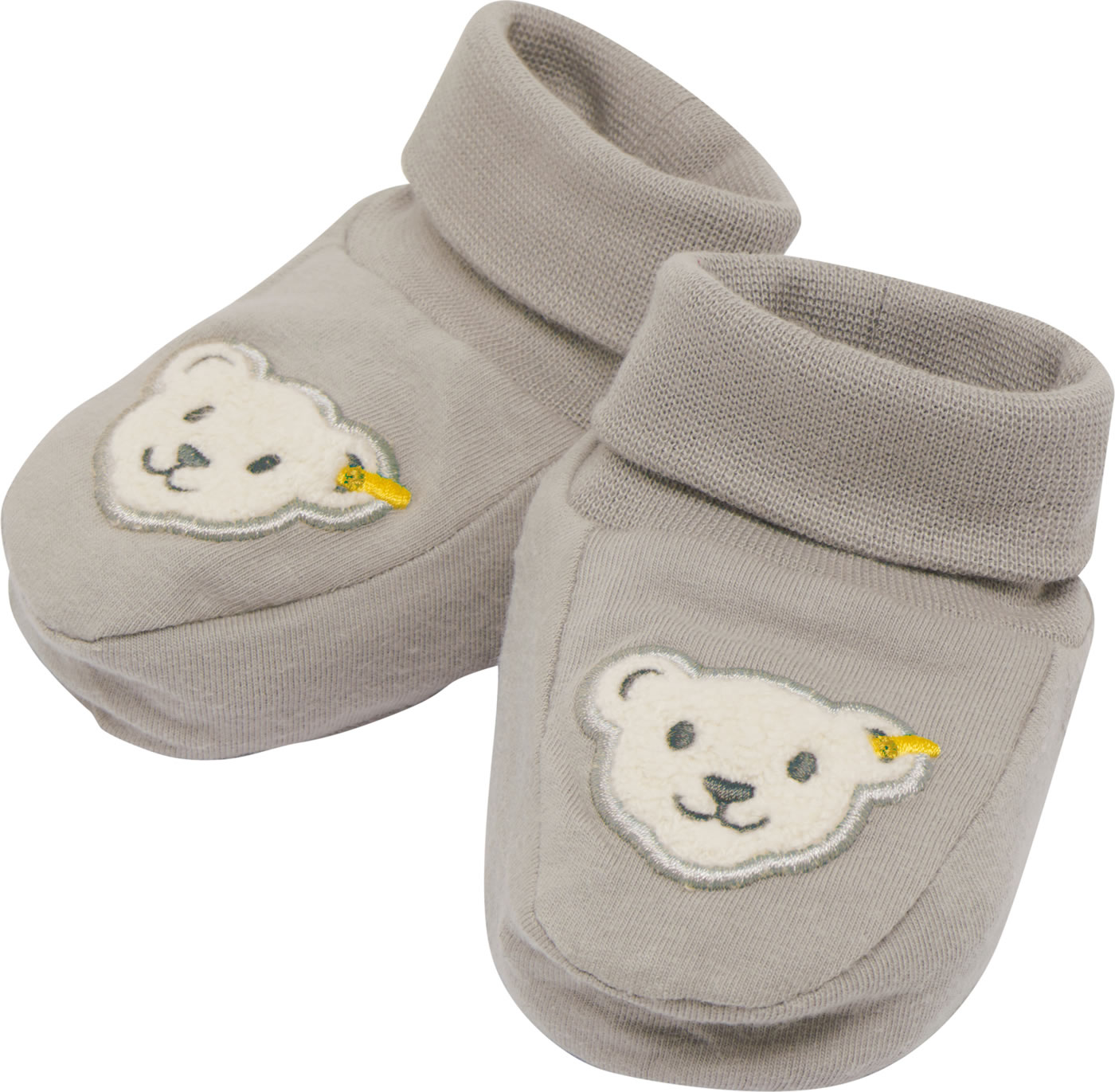 So bleiben Babys Füße immer schön warm. Die doppellagigen Baby-Schuhe aus weichem Jersey sind eine tolle Ergänzung zu der STEIFF Baby Organic Half Moon Kollektion. Der Steiff-Bärenkopf ist ein weiterer Hingucker. Die Baumwolle ist aus biologischem Anbau.