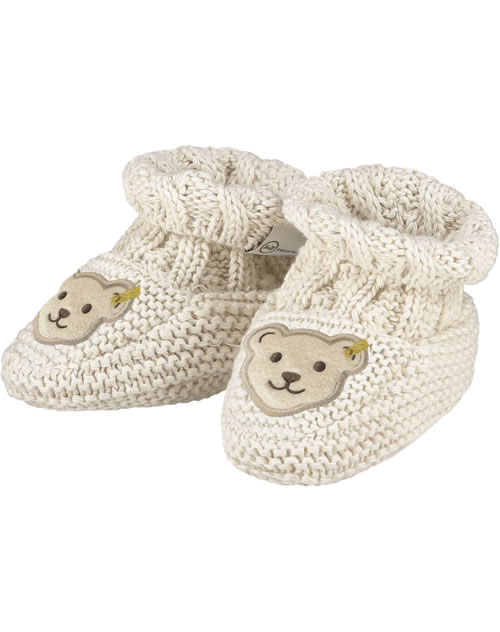 So bleiben Babys Füße immer schön warm. Die Baby-Schuhe sind aus Strick-Material gearbeitet und eine tolle Ergänzung zu der STEIFF Bear Hugs-Kollektion. Innen sind die Schuhe mit Baumwollstoff ausgekleidet. Die Baumwolle ist aus biologischem Anbau.