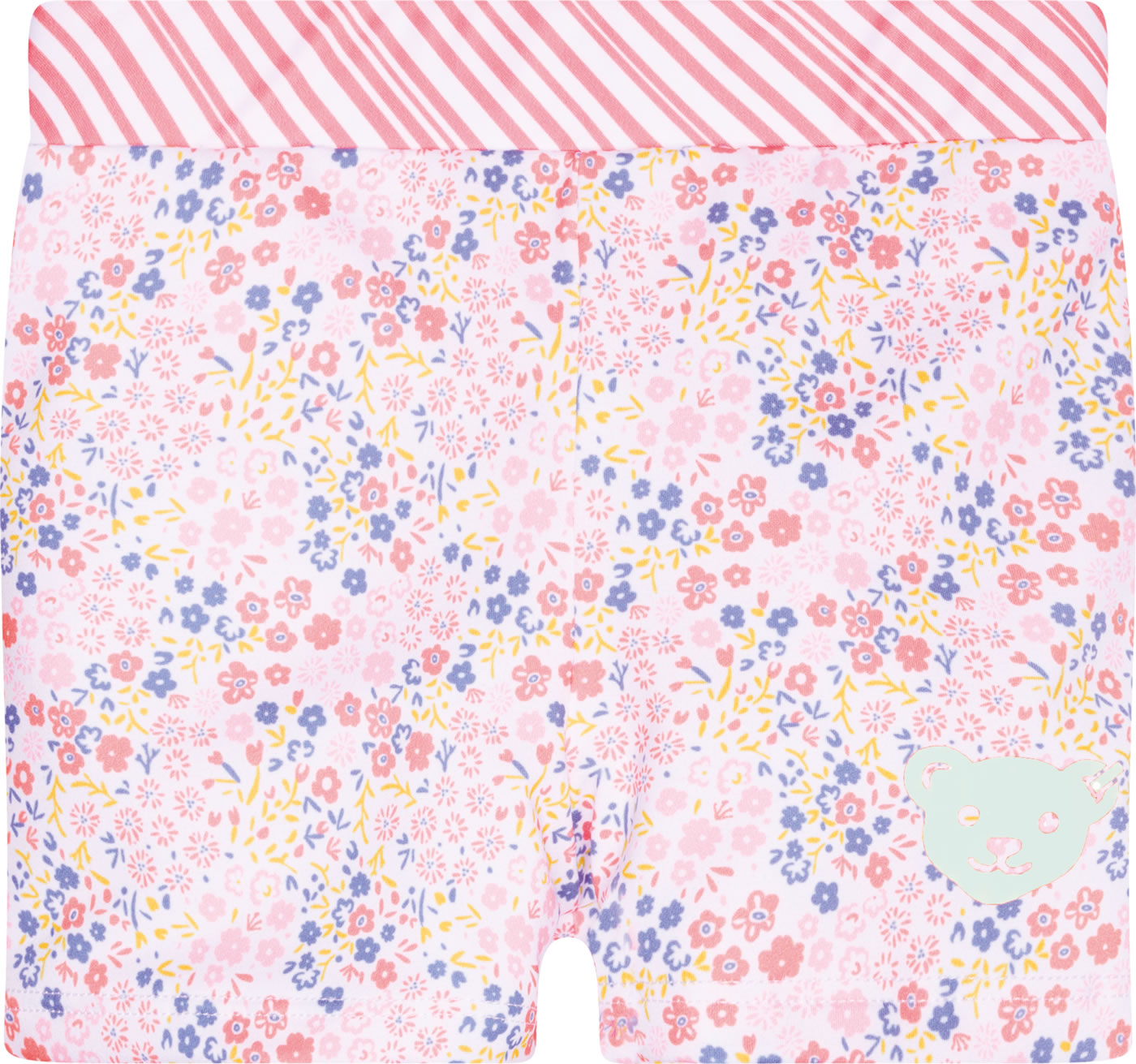 Badeshorts von STEIFF für Mädchen aus der Serendipity-Kollektion. Das florale Muster und der gestreifte Hosenbund sind ein toller Hingucker. Innen ist die Badehose mit einem Einsatz aus Mesh-Gewebe versehen. Die Weite läßt sich mit einem Tunnelzug regulieren.