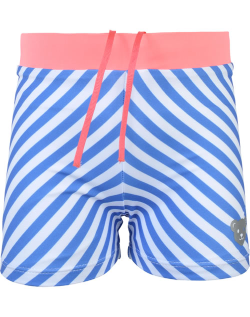 Badeshorts von STEIFF für Mädchen. Die gestreifte Badeshorts mit dem farblich abgesetzten Bund ist ein echter Hingucker. Innen ist die Badehose mit einem Einsatz aus Mesh-Gewebe versehen. Die Weite läßt sich mit einem Tunnelzug regulieren. Das Material bietet Sonnenschutz mit UPF 50+.