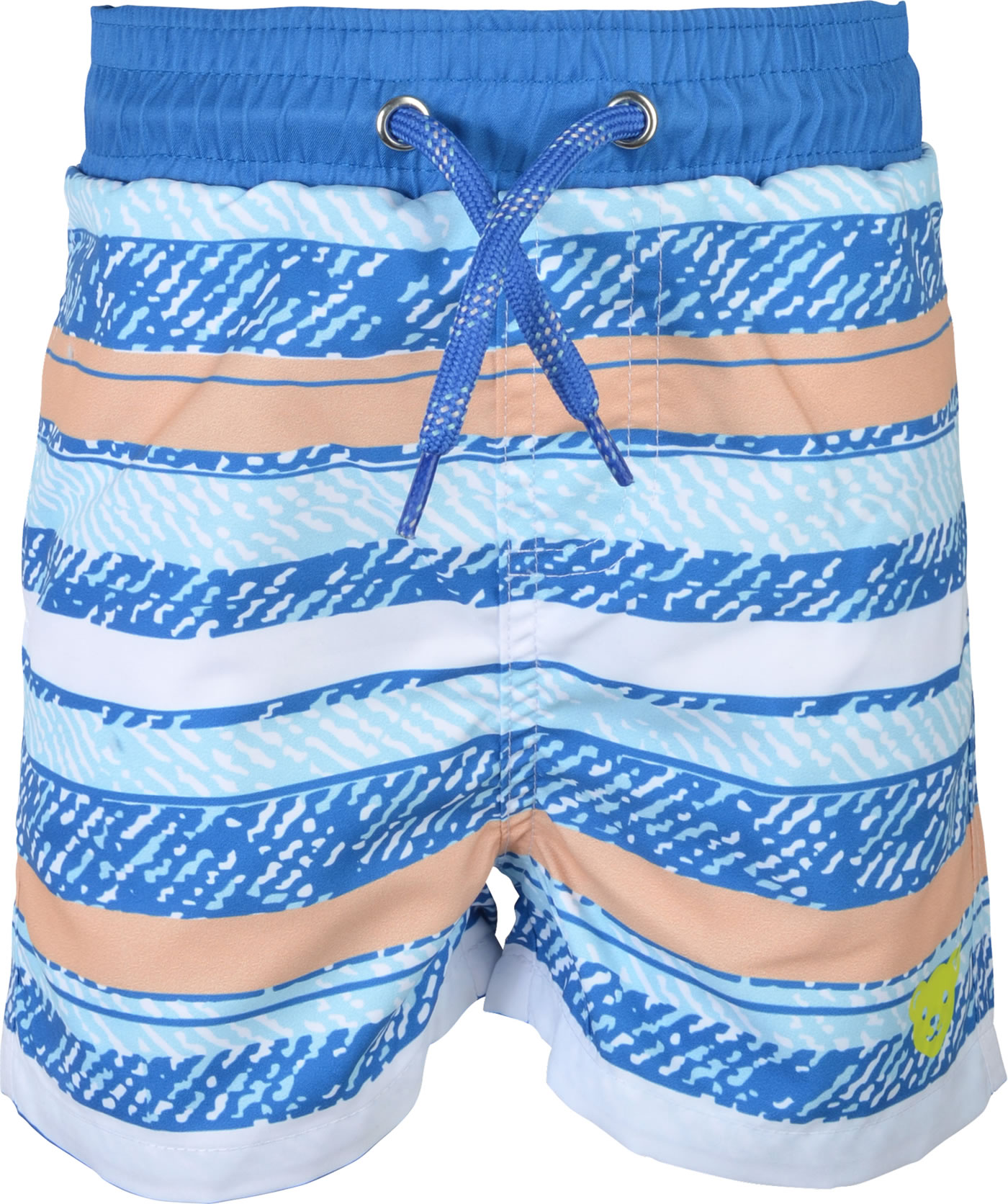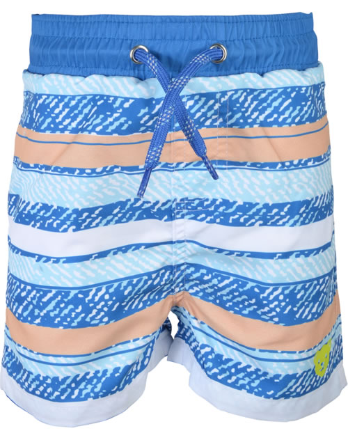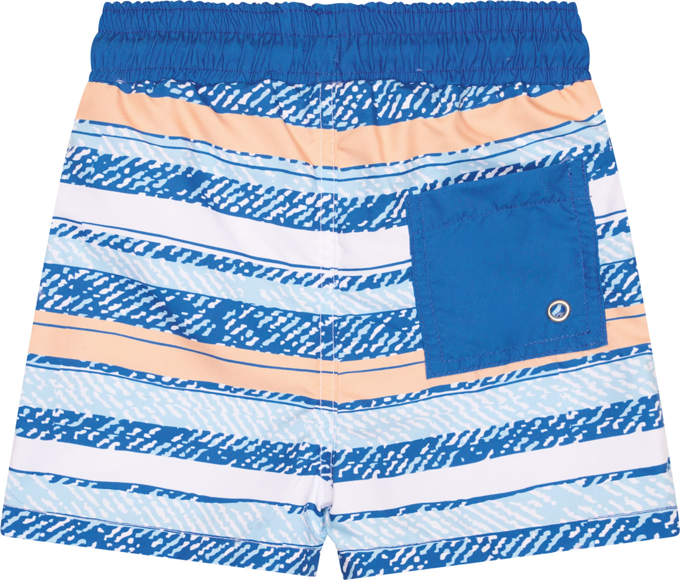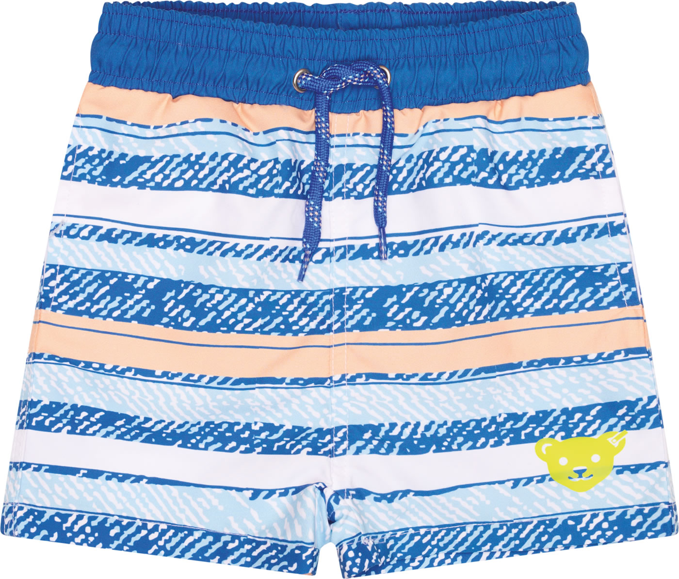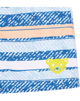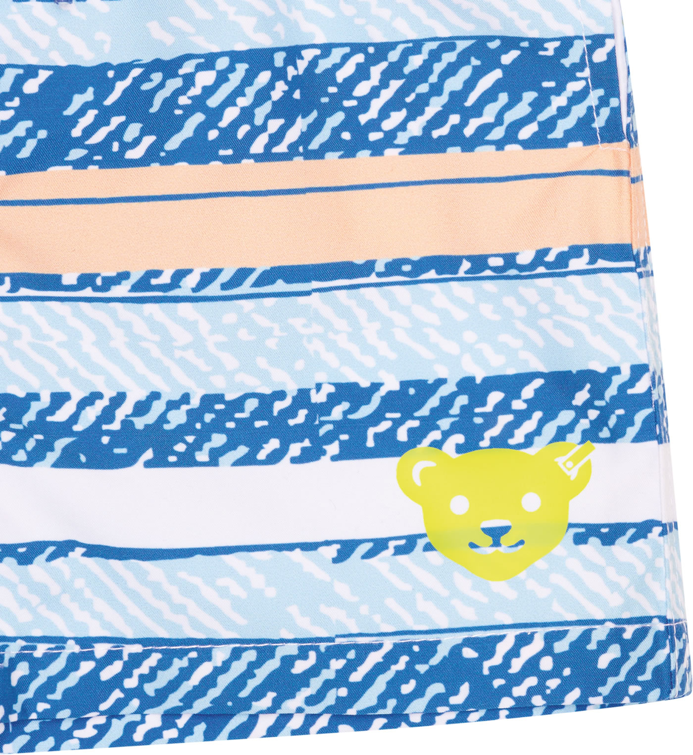 Gestreifte Schwimm-Shorts aus der happy Hippo-Kollektion von STEIFF für Jungen. Das STEIFF Bär ziert das linke Hosenbein. Von innen sorgt ein eingenähter Slip für ein komfortables Tragegefühl. Zwei Einstecktaschen und eine hintere Tasche bieten Platz für kleine Schätze. Das Material bietet Sonnenschutz mit UPF 50+.
