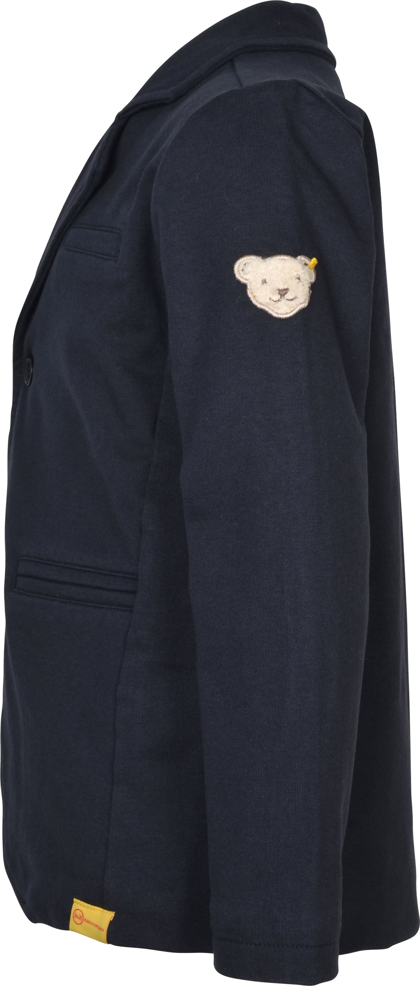 Schicker Blazer in dunkelblau von STEIFF aus der Special Day-Kollektion. Durch die zwei angedeuteten Taschen auf der Vorderseite und der kleinen STEIFF-Bären Applikation auf dem linken Ärmel ist diese Jacke ein absoluter Hingucker. Das zart gestreifte Baumwollfutter bildet einen schönen Kontrast. Der bequeme Blazer aus Sweatstoff lässt sich prima mit anderen Artikeln der Kollektion kombinieren.