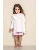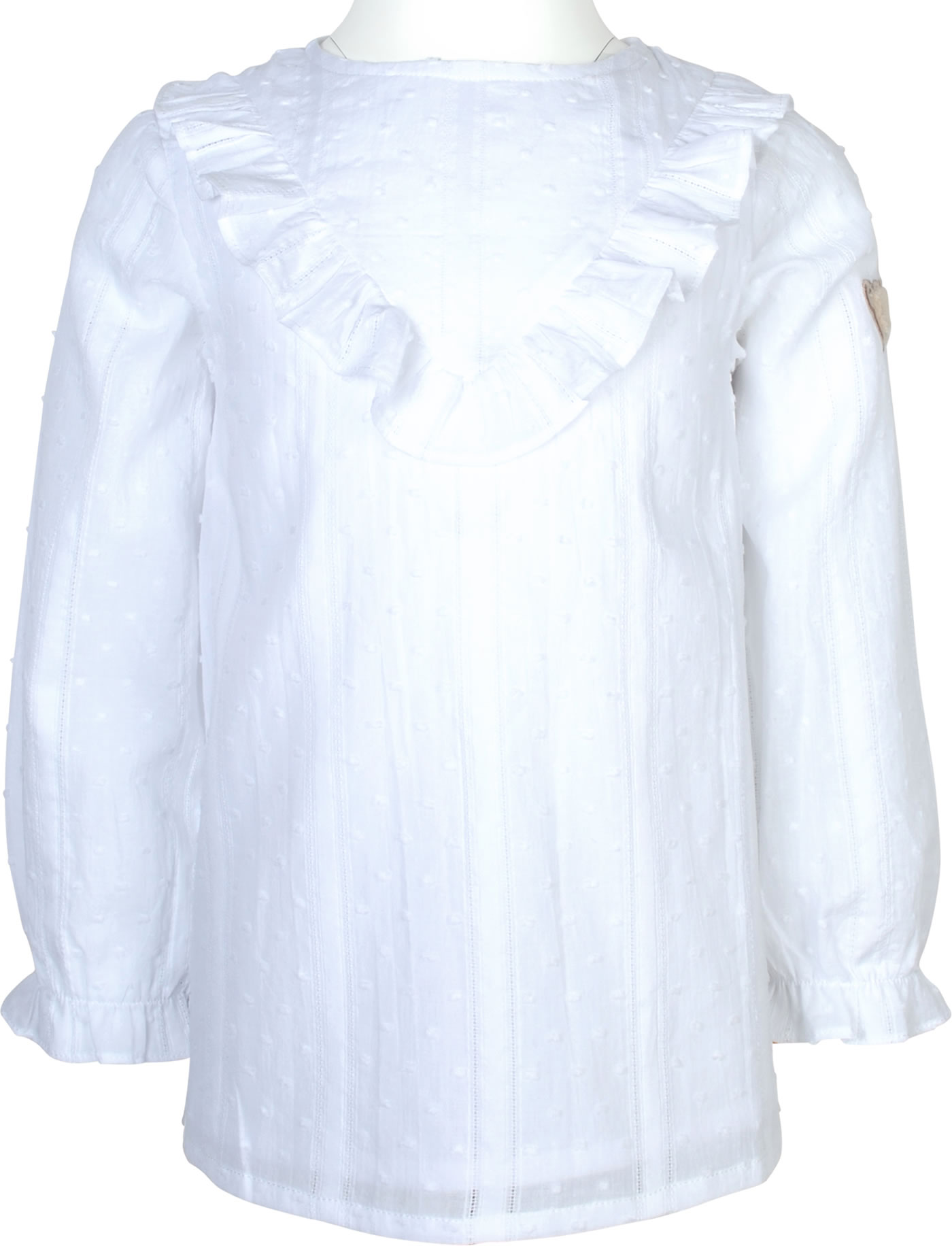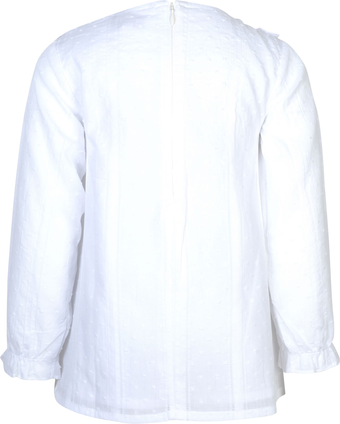 Weit geschnittene Bluse im Tunika-Stil mit Rundhals-Ausschnitt für Mädchen aus der Beach Please Kollektion von STEIFF. Die Bluse mit langen Ärmeln ist aus festem Baumwollsoff wird mit einem Reißverschluss auf der Rückseite verschlossen. Der weiße Futterstoff sorgt für Blickdichte. Besonders schön sind die gestickten Tupfen, die eingewebte Spitze und der STEIFF Bär auf dem linken Ärmel.