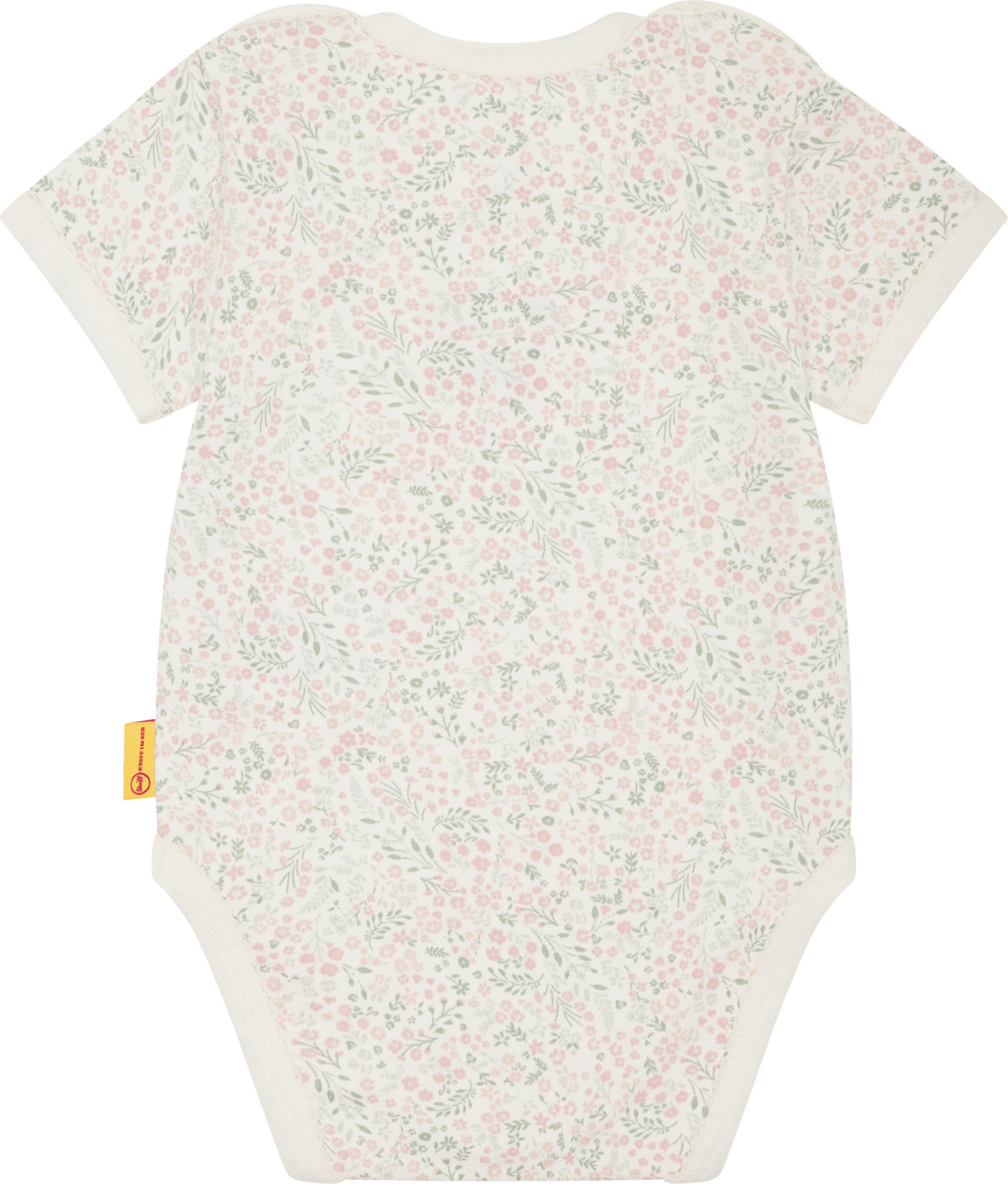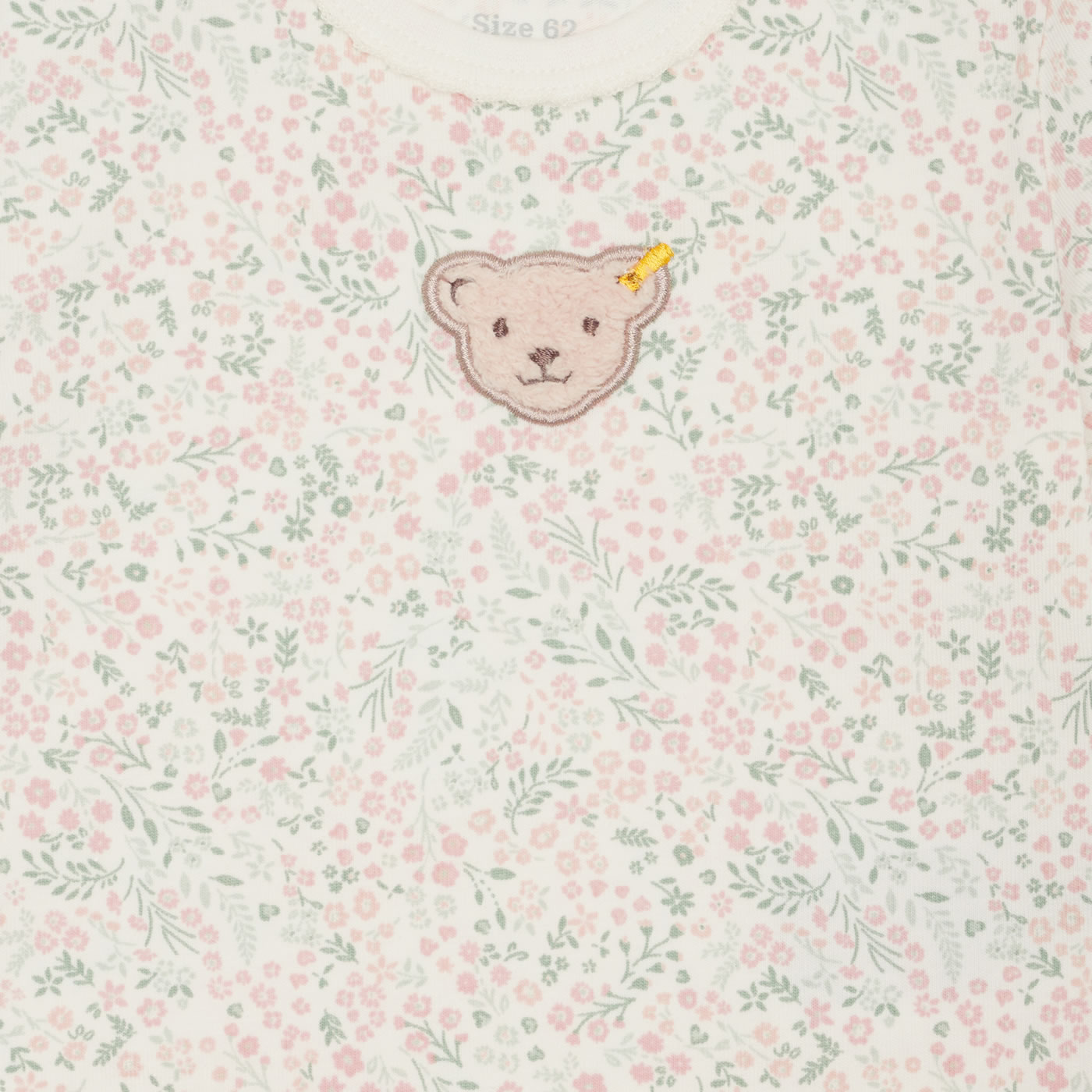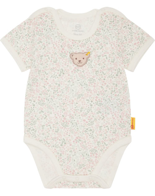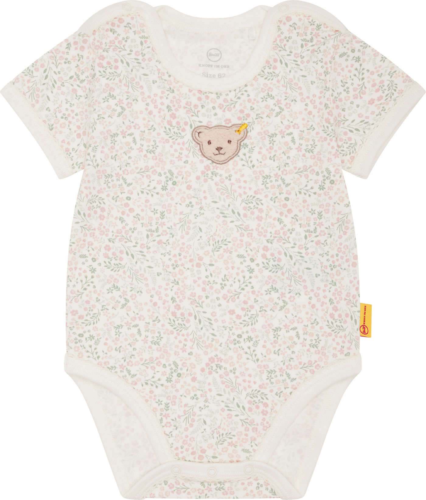 Body mit kurzen Ärmeln für Mädchen aus der Jungle Feeling-Kollektion von STEIFF. Auf der Brust befindet sich der STEIFF-Bär. Die Druckknöpfe im Schritt und auf den Schultern helfen beim An- und Ausziehen. Der Body mit dem zarten Blumenmuster ist aus weichem Jersey und bietet einen hohen Tragekomfort.