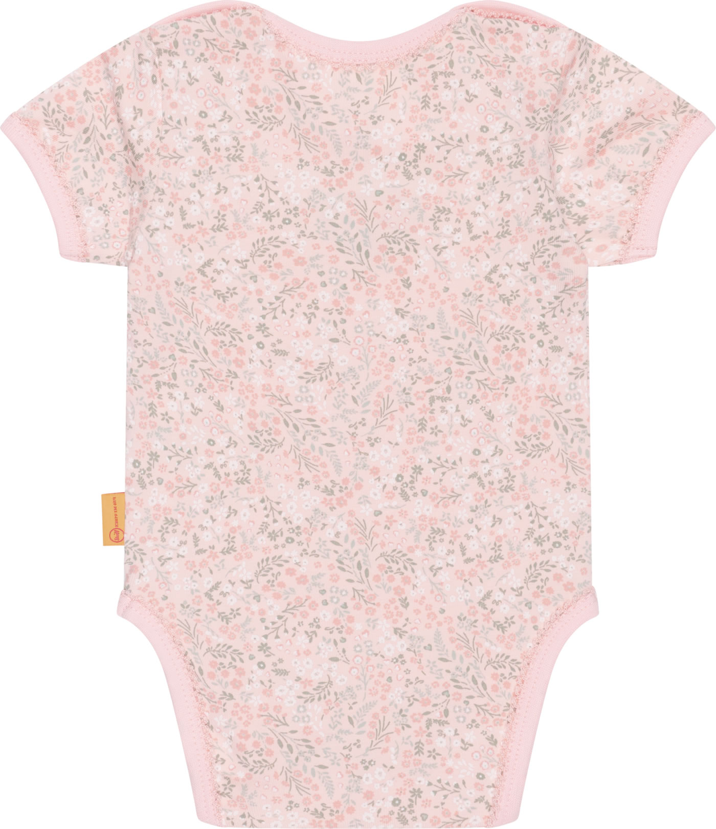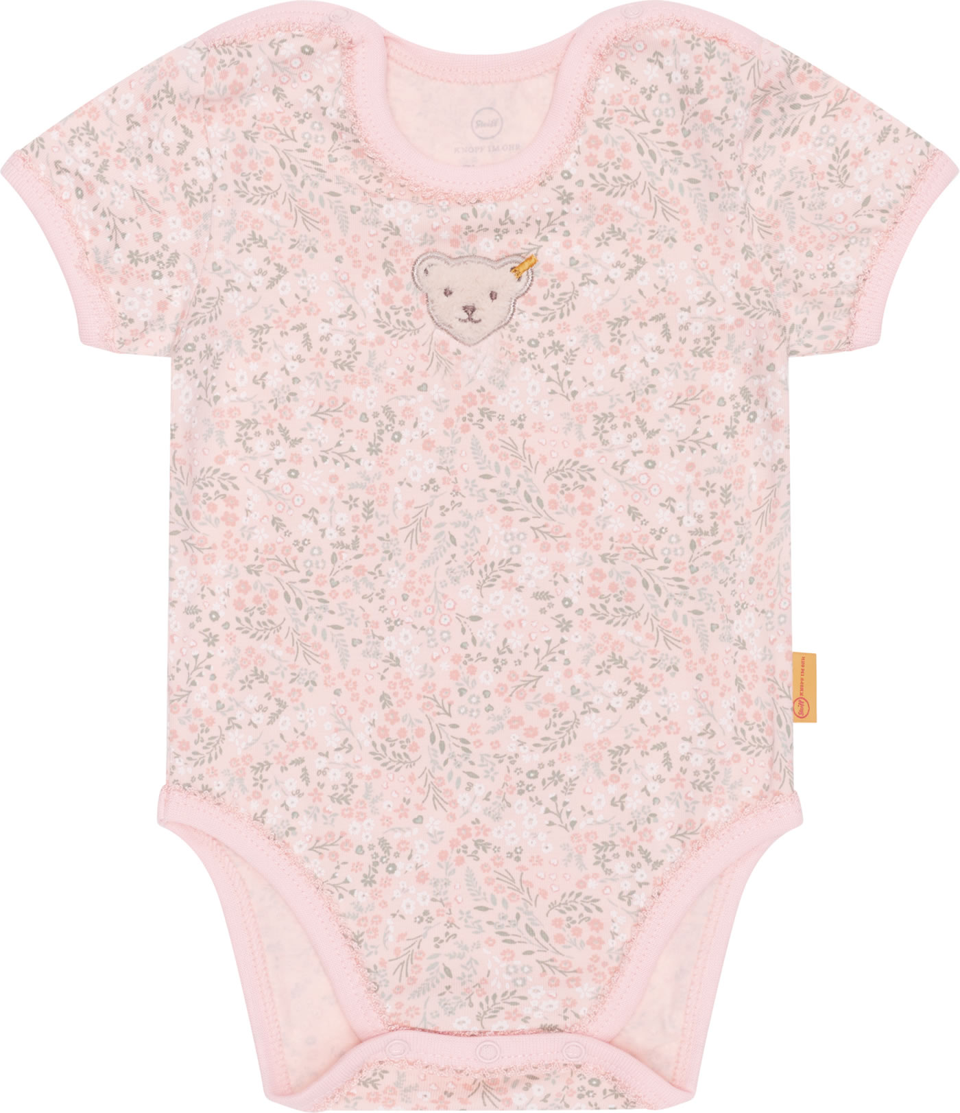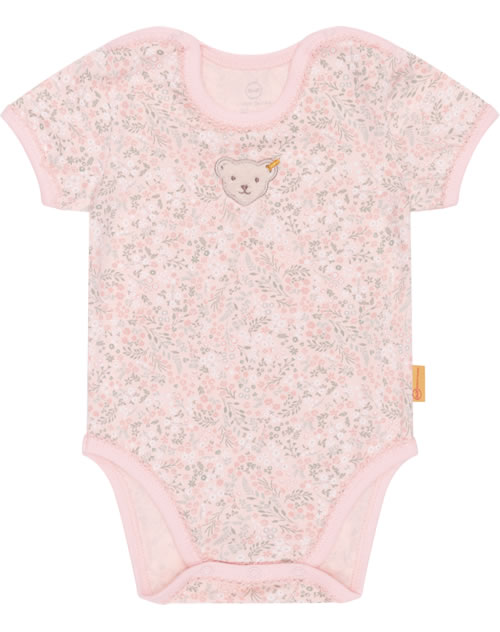 Body mit kurzen Ärmeln für Mädchen aus der Jungle Feeling-Kollektion von STEIFF. Auf der Brust befindet sich der STEIFF-Bär. Die Druckknöpfe im Schritt und auf den Schultern helfen beim An- und Ausziehen. Der Body mit dem zarten Blumenmuster ist aus weichem Jersey und bietet einen hohen Tragekomfort.