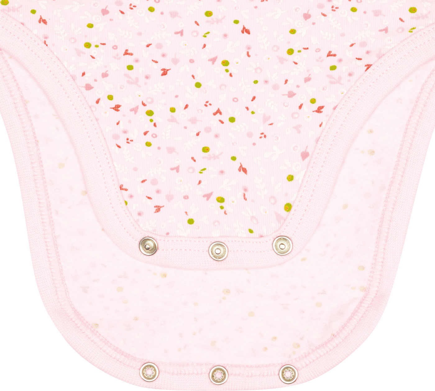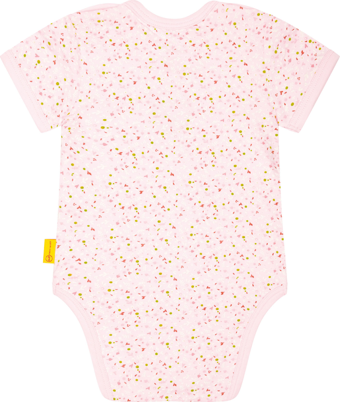 Body mit kurzen Ärmeln für Mädchen aus der Wild City-Kollektion von STEIFF. Auf der Brust befindet sich der kleine STEIFF-Bär. Die Druckknöpfe im Schritt und auf der Schulter helfen beim An- und Ausziehen. Besonders schön ist das zart Blumenmuster.