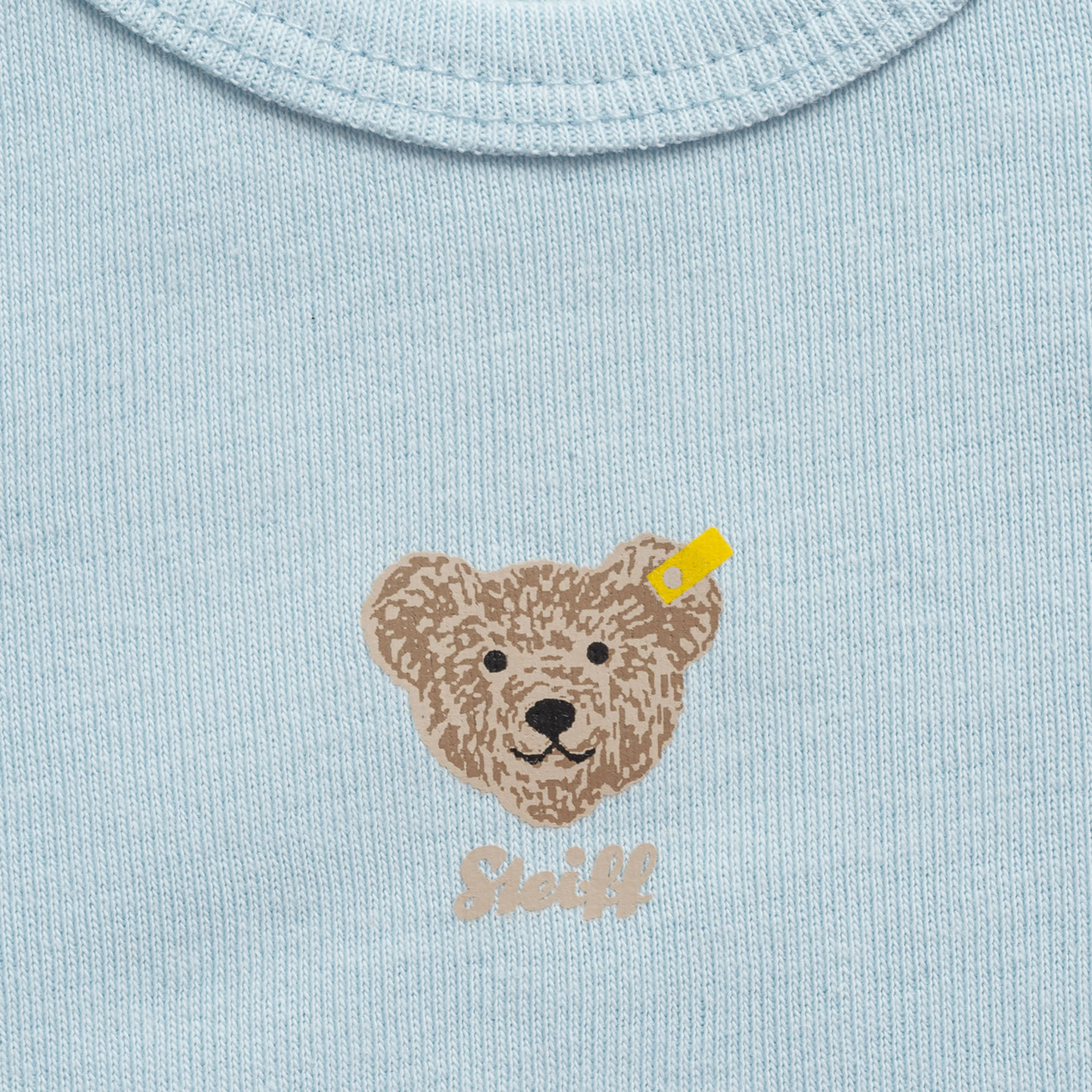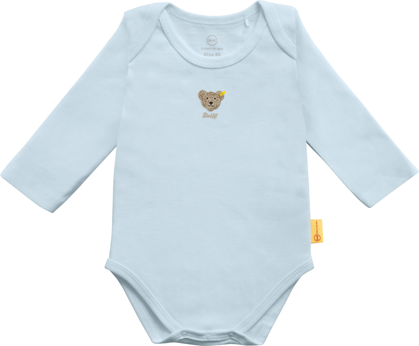 Body mit langen Ärmeln aus der Basic-Kollektion von STEIFF. Die Brust ziert ein Print mit dem kleinen STEIFF Bären. Ein Schlupfkragen und Druckknöpfe im Schritt erleichtern das Anziehen und Wickeln. Das weiche Material bietet einen hohen Tragekomfort.