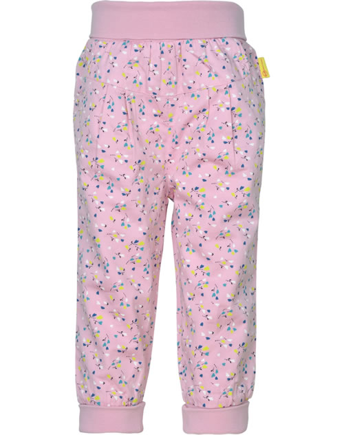 Weit geschnittene Bund-Hose für Mädchen von STEIFF aus der Sweet Heart-Kollektion. Dank des breiten Bauchbundes und der Bündchen am Bein sitzt die Hose sehr bequem. Die Baumwoll-Hose ist doppellagig und dadurch schön warm. Schöne Details sind das Blumenmuster und der kleine STEIFF Bär auf der Rückseite.