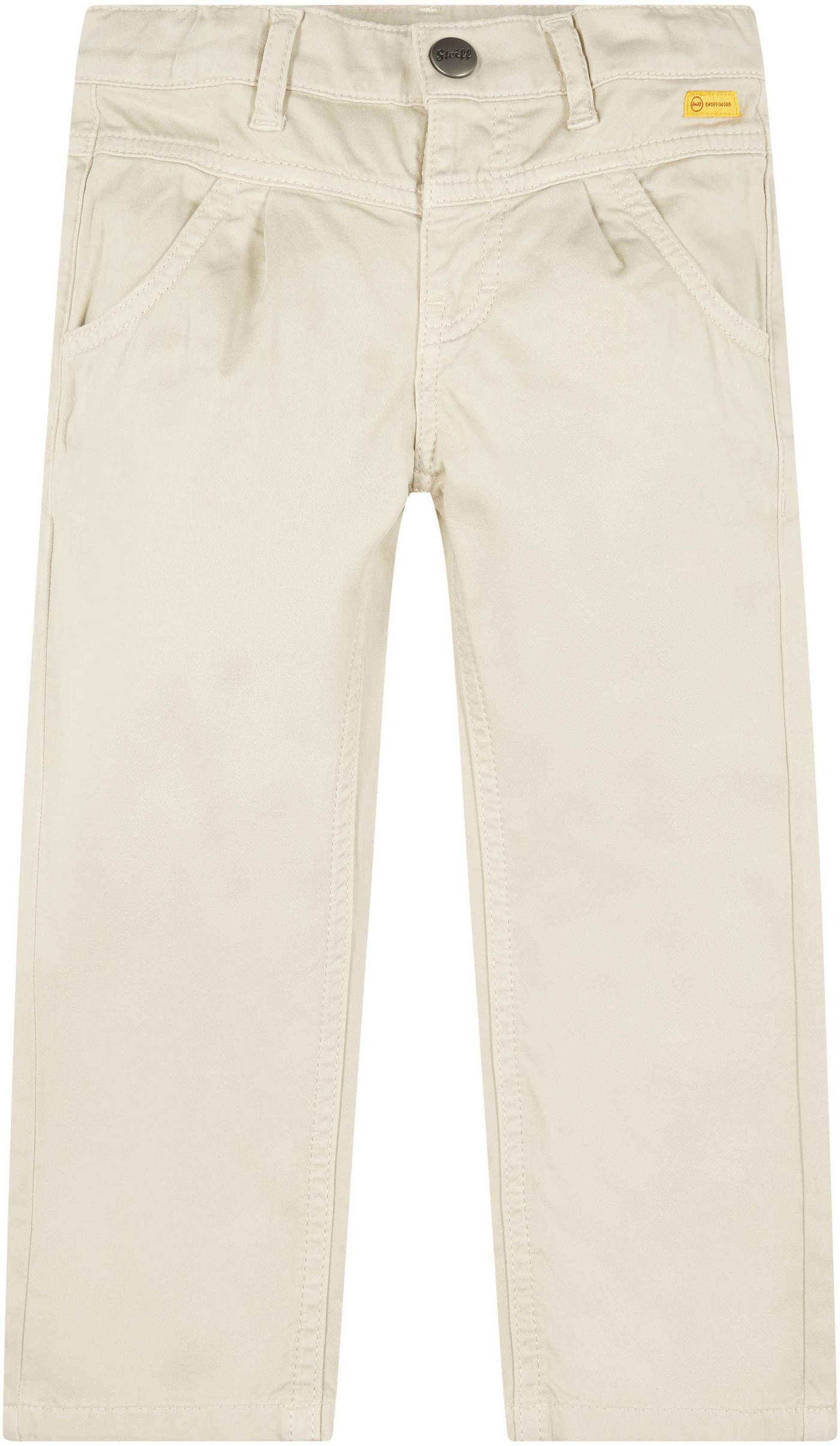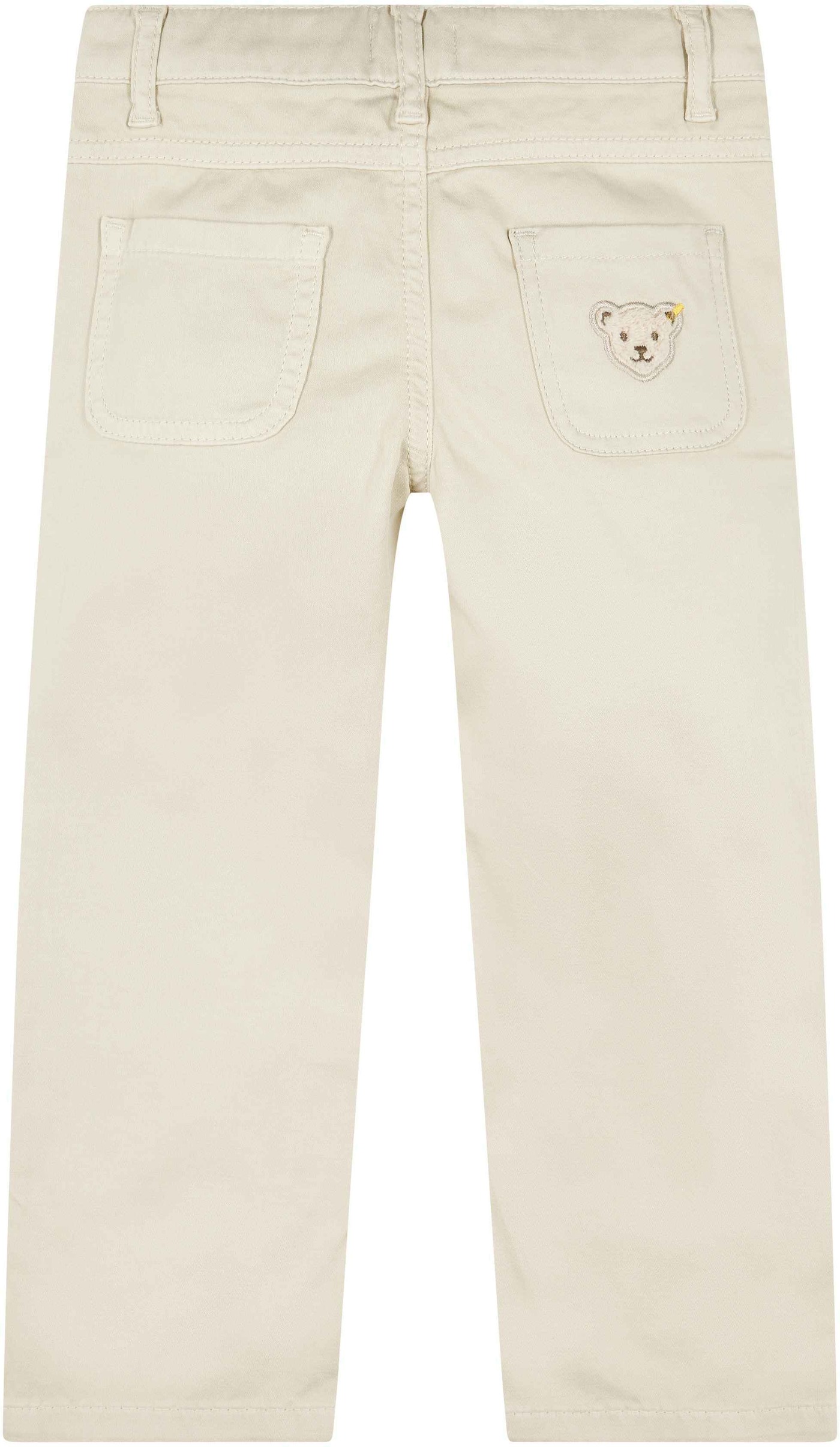 Lässig geschnittene Canvas-Hose aus festem Baumwollstoff für Mädchen aus der Butterfly-Kollektion von STEIFF. Zwei Einstecktaschen befinden sich auf der Vorderseite und der STEIFF Bär ziert die Rückseite. Verschlossen wird die Hose mit einem Druckknopf und die Weite lässt sich innen am Bund regulieren.