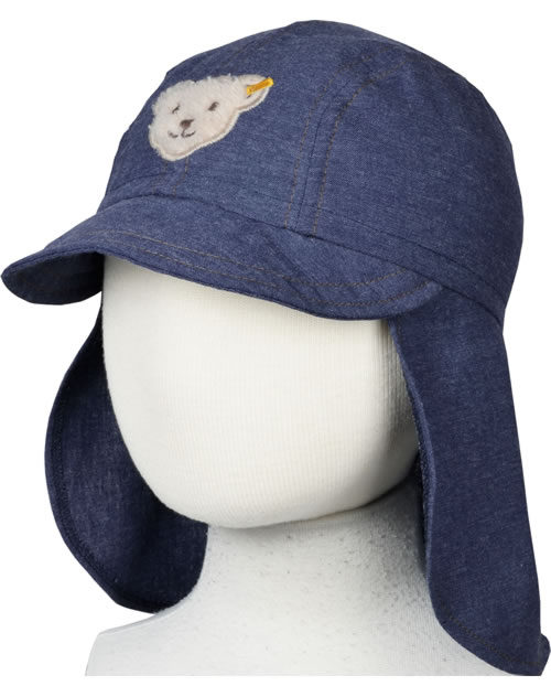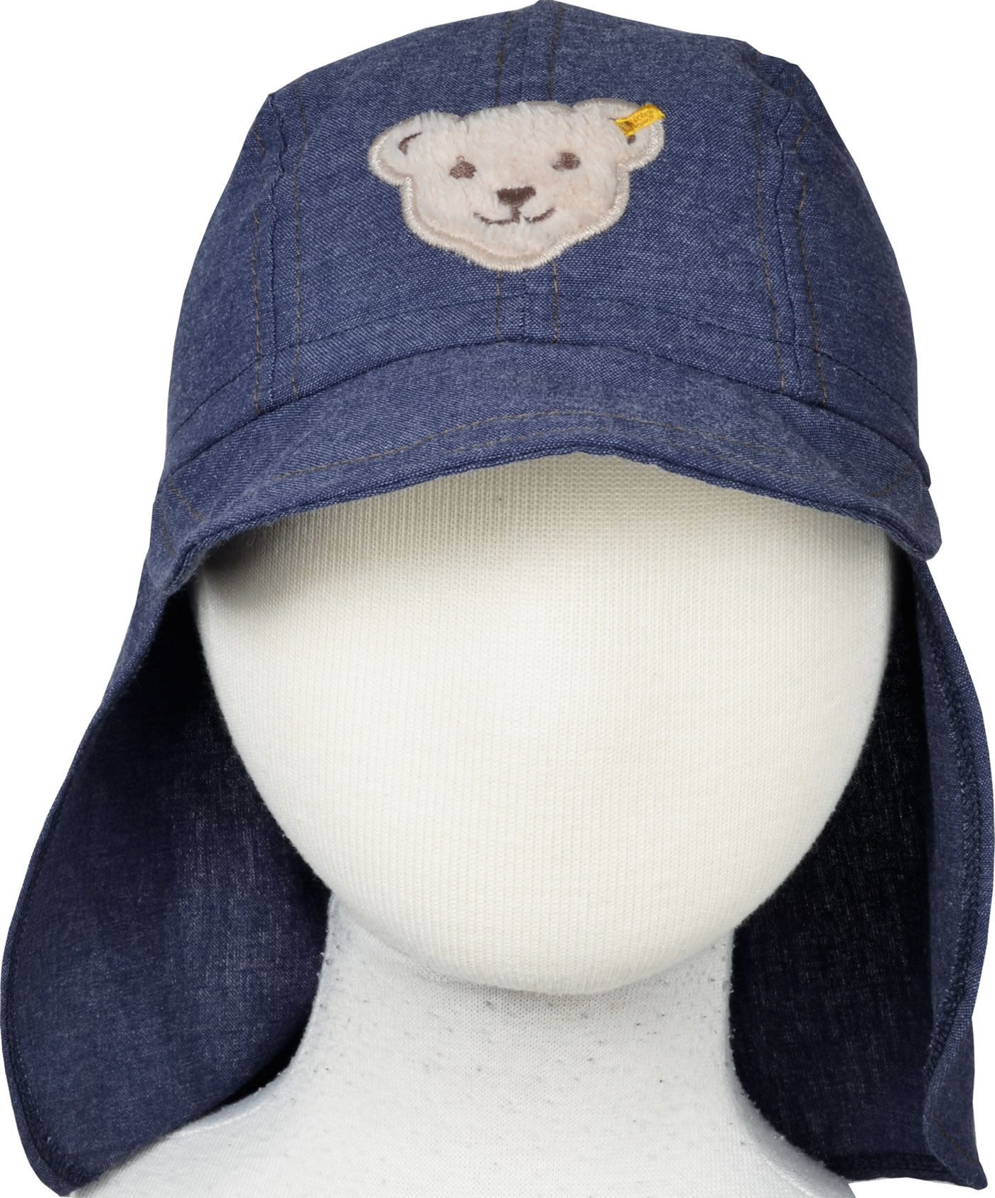 Diese Jeans-Mütze in blue indigo von STEIFF aus der Go Bear Go-Kollektion für Jungen ist dank des Nackenschutzes der optimale Begleiter für sonnige Tage. Die Vorderseite ziert der kleine STEIFF Bär. Ein Gummizugband auf der Rückseite gibt zusätzlich Halt.