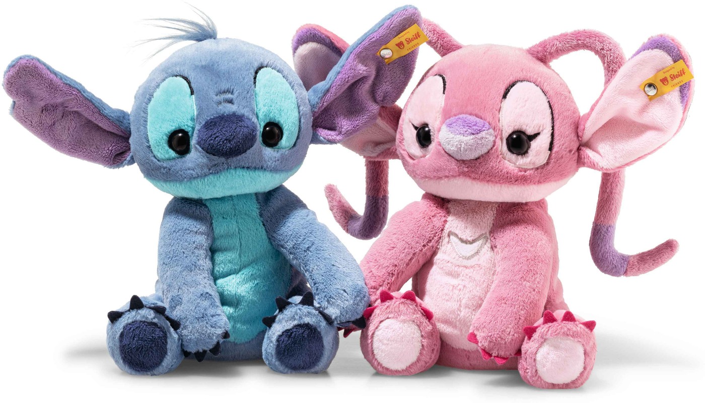 Angel, die weibliche Entsprechung von Stitch, ist nun auch Teil der wundervollen Disney Kollektion von Steiff. Damit tritt sie in Stichts Fußstapfen. In der Disney Serie „Lilo und Stitch“ hat das Alien Angel, auch bekannt als Experiment 624, eine besonders mächtige Fähigkeit: den Sirenengesang. Anfangs nutzt sie diesen, um das freundliche Alien Stitch in die Irre zu führen, doch im Laufe der Geschichte verändert sich Angels Charakter. Es offenbaren sich ihre tiefe Verbindung zu Stitch sowie ihre besondere Intelligenz und ihr liebenswert frecher Charme. Auch Angels Erscheinung ist besonders: Nicht nur ihr Plüsch in Rosa- und Lilatönen ist auffällig, sondern auch ihre markanten Antennen machen sie einzigartig. Die mit Granulat gefüllten Säckchen in ihren Armen, Füßen und ihrem Körper verleihen Angel eine besondere Stabilität. In ihren Augen findet sich ein liebevoller Ausdruck. Mit 23 cm ist diese Angel von Steiff perfekt auf die Größe von Stitch (Artikelnummer 024696) abgestimmt, was die beiden Charaktere zu perfekten Spielgefährten macht.