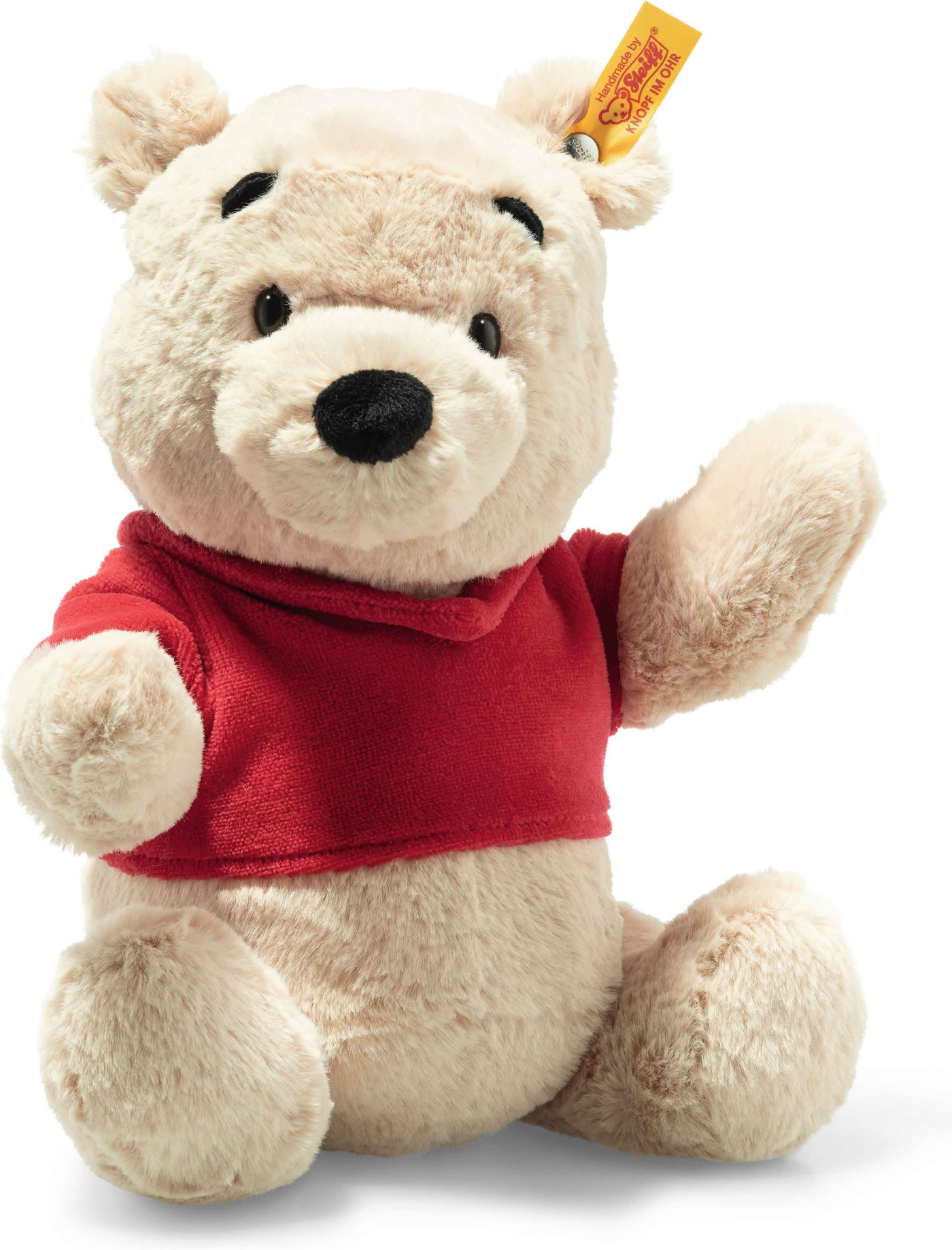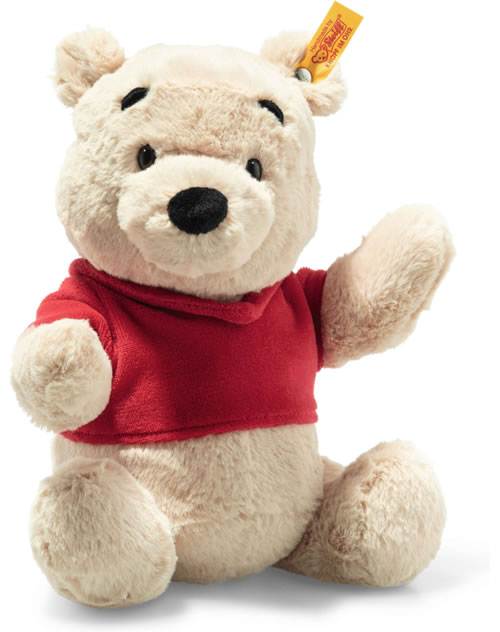 Disney Originals Winnie Puuh aus blondem, herrlich weichem Plüsch ist als erstes Steiff Tier mit Disney Lizenz 5-fach gegliedert. Der 29 cm große Bär im typischen roten Pulli schaut aus schwarzen Knopfaugen in die Welt; dazu passen seine hohen Augenbrauen, die vorwitzige Nase und kuschelig runde Bärenohren! Disney Winnie Puuh gehört zu einer Serie neuer Steiff Spieltiere mit Disney Lizenz... Wir sind stolz darauf!