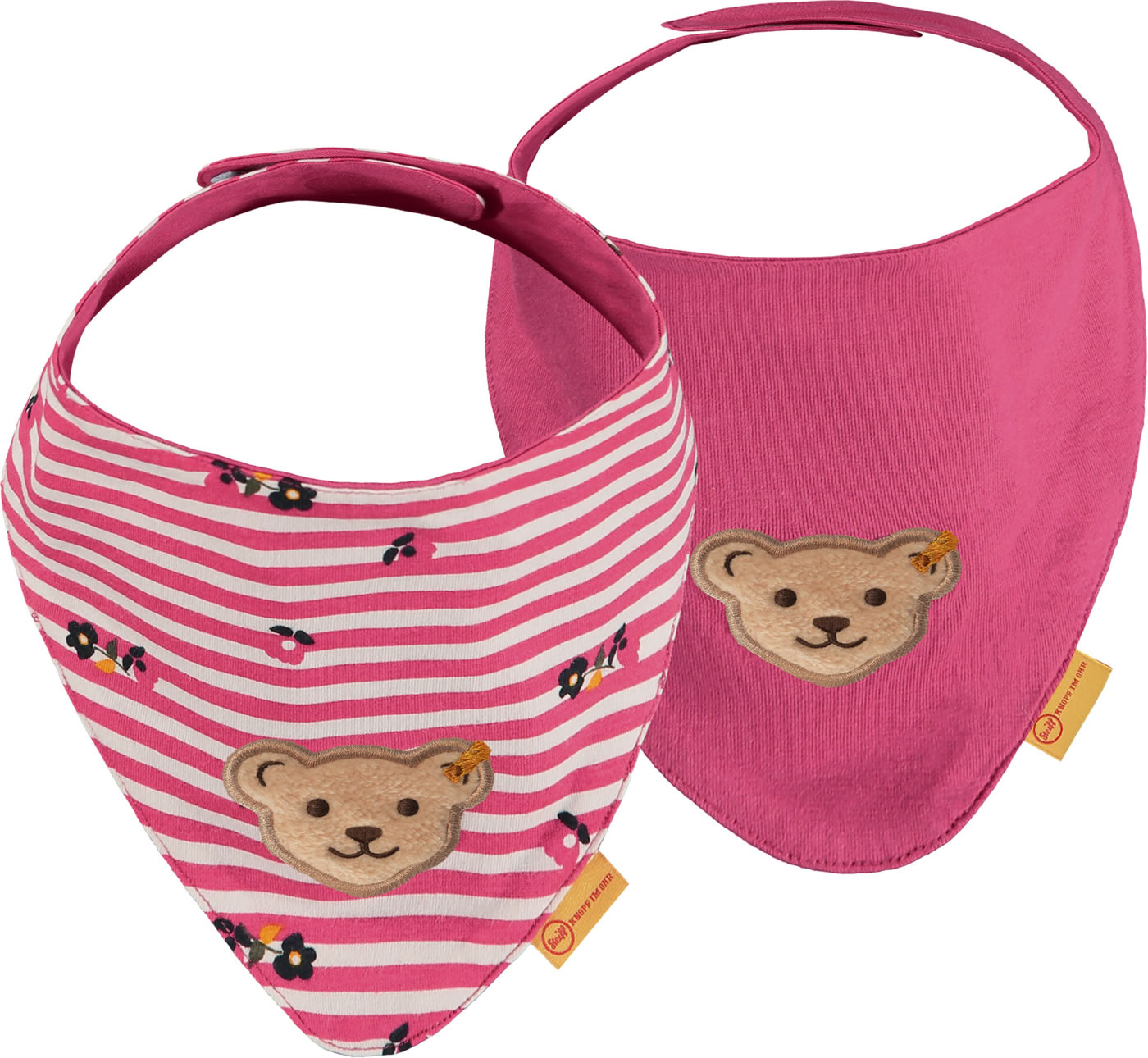 Halstuch-Set für Mädchen von STEIFF aus der Ponyful-Kollektion. Auf der Vorderseite befindet sich der kleine STEIFF Bär. Die Rückseite ist aus weichem Baumwoll-Jersey. Die Halstücher mit Klettverschluss sind tolle Begleiter für die kühleren Tage.