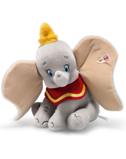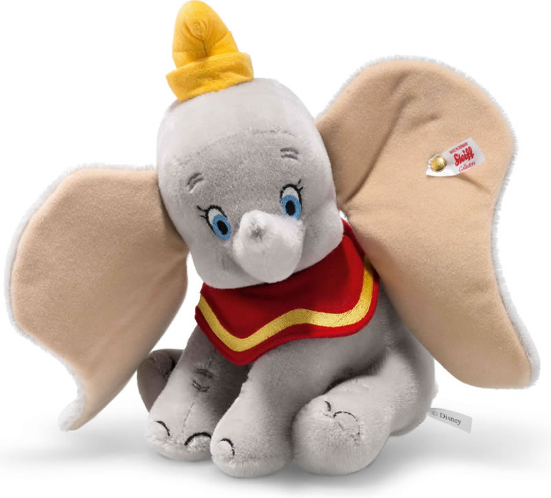 Wozu diese Ohren, wenn nicht zum Fliegen? Mit einem großen Sprung soll der kleine Dumbo die Zirkuskasse klingeln lassen! Doch der Auftritt misslingt... Statt Beifall gibt es Spott und die Nebenrolle in einer Clownsnummer. Erst die Freundschaft zur Maus Timothy und die Magie einer Rabenfeder verleihen ihm Selbstvertrauen. Und tatsächlich: Bei der nächsten Clownsnummer überrascht der kleine Dumbo alle – und fliegt! Als der Elefant 1941 in die Kinos kommt, erobert er viele Herzen, auch die der Oscar-Jury. Aus feinstem Mohair gearbeitet, schwingt sich Dumbo 2017 noch einmal ganz nach oben: als Star in 2.000 Steiff Manegen. Herzflattern erwünscht!