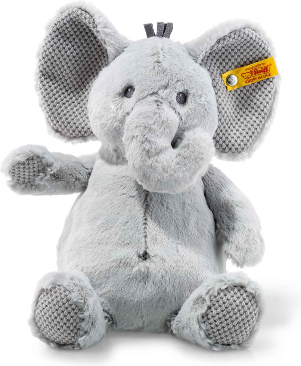 Der 28 cm große Soft Cuddly Friends Ellie Elefant aus Plüsch für babysanfte Haut ist einfach zum Liebhaben. Die Granulatsäckchen im Gesäß, den Pfoten und den Sohlen machen ihn zum robusten Freund, den man überall drücken und knuddeln möchte. Die Augen sind gestickt. Das Webmuster in den Ohren, den Pfoten und den Sohlen animiert zum Festhalten.