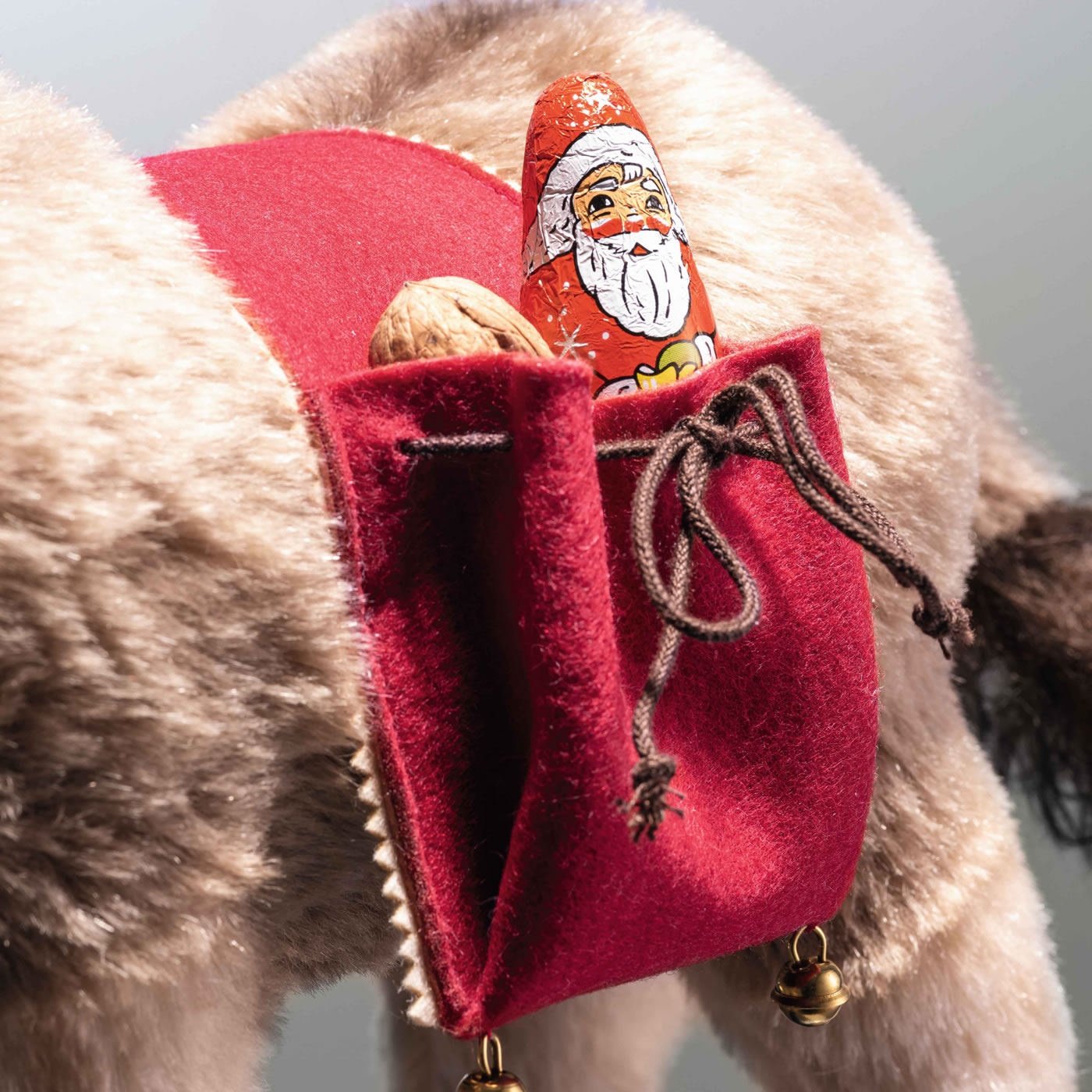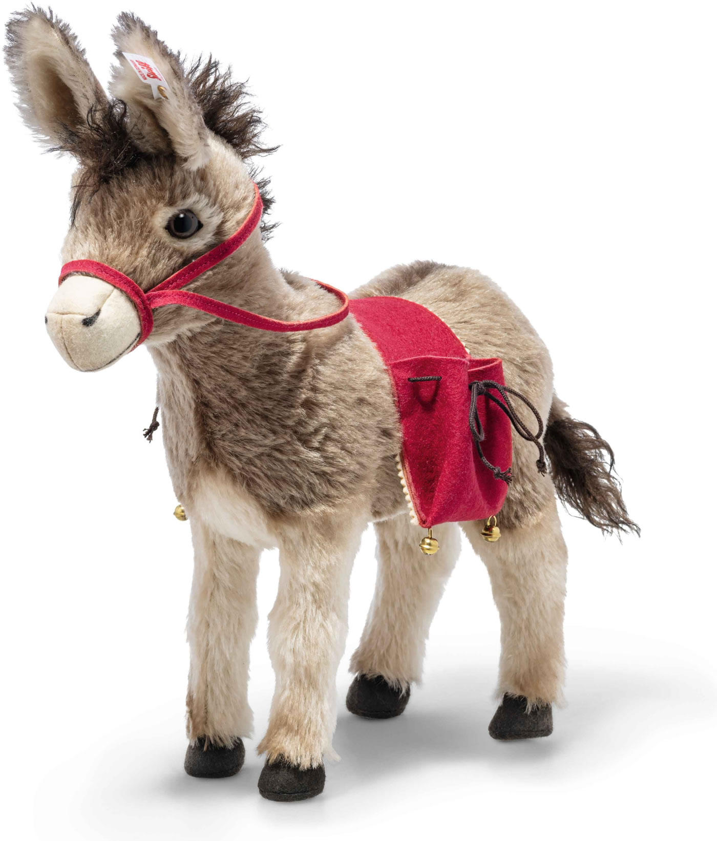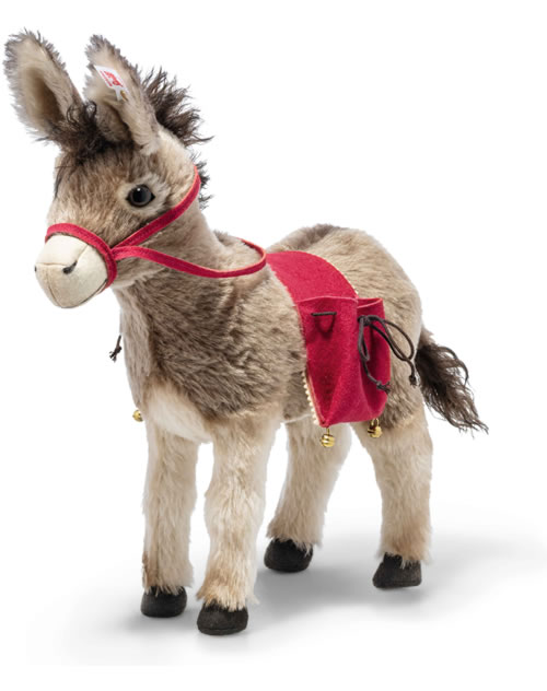 Ein treuer Gefährte für Maria und Josef auf ihrer beschwerlichen Reise zum berühmten Stall in Bethlehem ist der beeindruckende Esel Asinus. Mit viel Liebe zum Detail wurde der 34 cm große Asinus gestaltet, um bereit zu sein für die lange Reise. Sein Fellkleid aus grauem und beigem Mohair, sein wacher Blick, die aufmerksam lauschenden Ohren sowie der aufwändig und detailreich gestaltete Sattel machen ihn zum liebenswerten Blickfang.