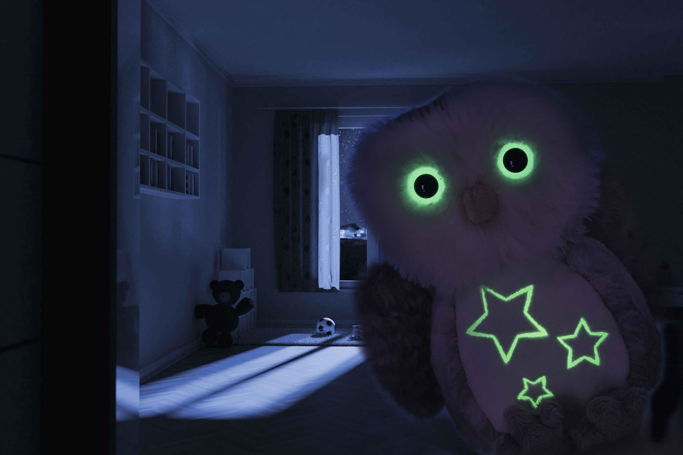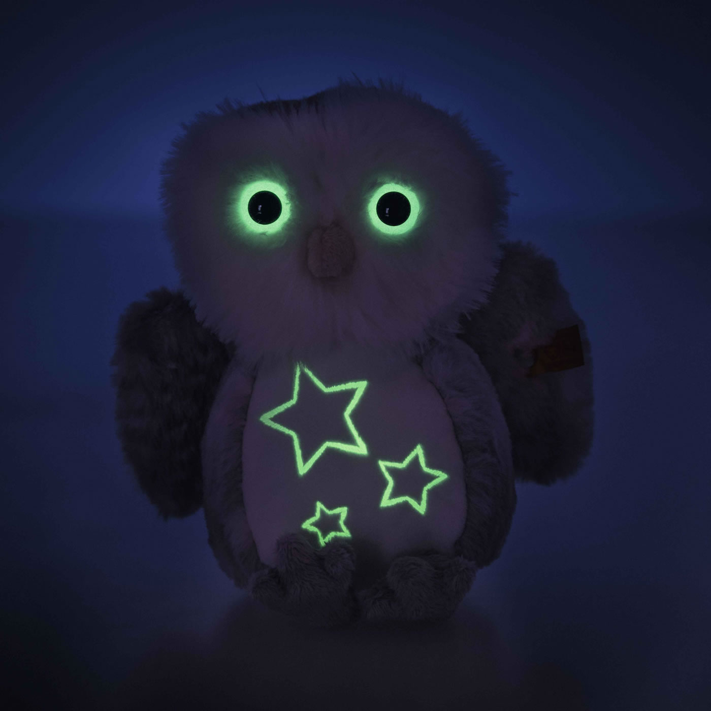Die 19 cm große, liebevoll gestaltete Light at Night Wittie Eule aus kuschelweichem Plüsch in Grau und Weiß versöhnt Kinder mit dem Einschlafen. Beim Gute-Nacht-Kuscheln fühlen sich Witties Gesicht, die schönen Flügel und Füße toll an. Dazu leuchten ihre Augen und die in Leuchtgarn gestickten Sterne im Dunkeln bis zu 20 Minuten lang sanft. Der Glow-in-the-Dark-Effekt beruhigt, die Dunkelheit wird vertraut, das Einschlafritual für alle leichter. Bis es irgendwann heißt. „Licht aus! Wittie soll leuchten...“