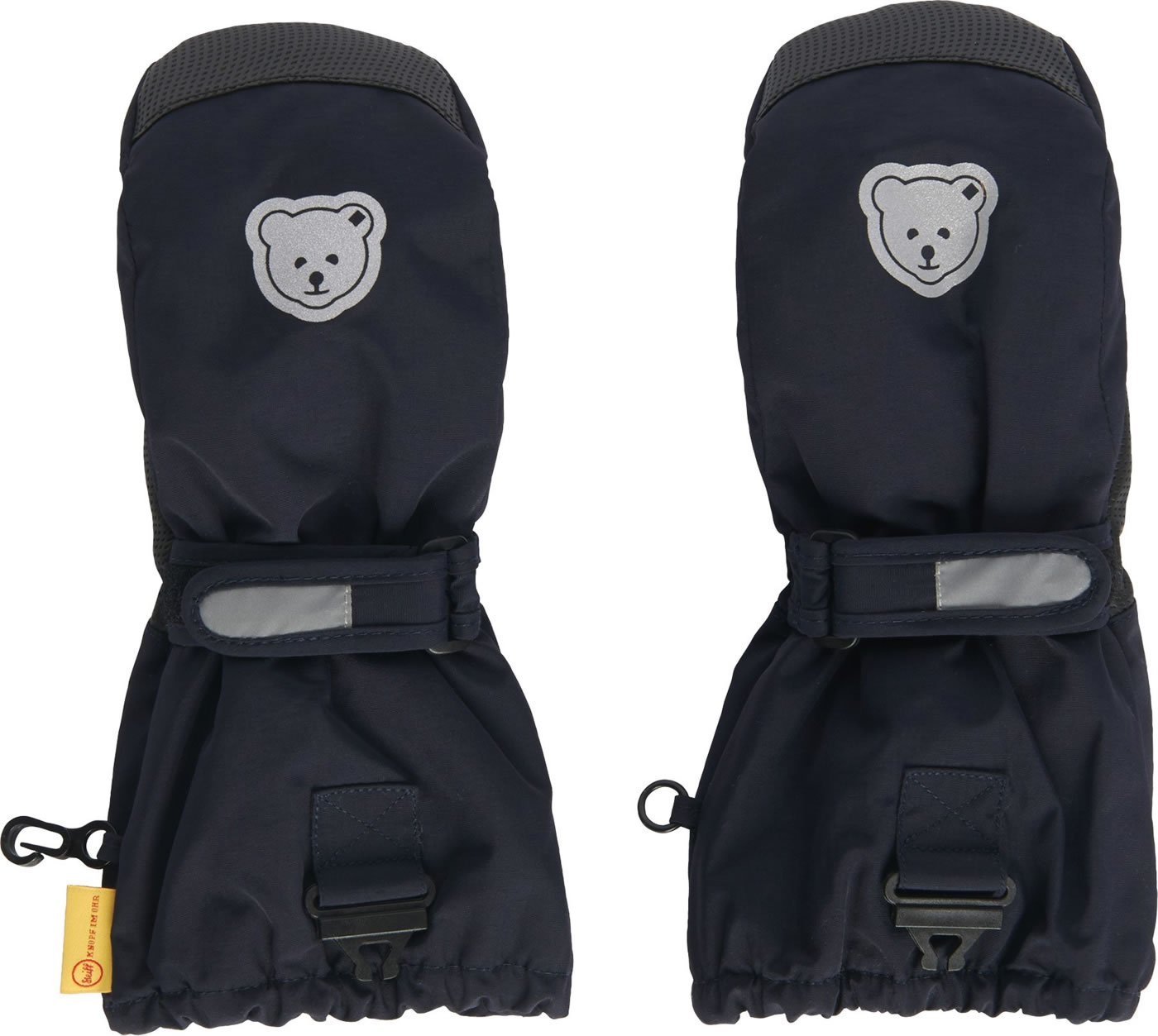 Warme gefütterte Handschue OUTDOOR von STEIFF. Die atmungsaktive BIONIC-FINISH ECO-Imprägnierung ist fluorfrei und macht sie wasser- und schmutzabweisend. Die Weite läßt sich regulieren. Reflektierende Elemente sorgen für eine erhöhte Sichtbarkeit im Dunkeln. Dank eines Sicherheitsclips lassen sie sich an den Jacken und Schneeanzügen der OUTDOOR-Kollektion befestigen.