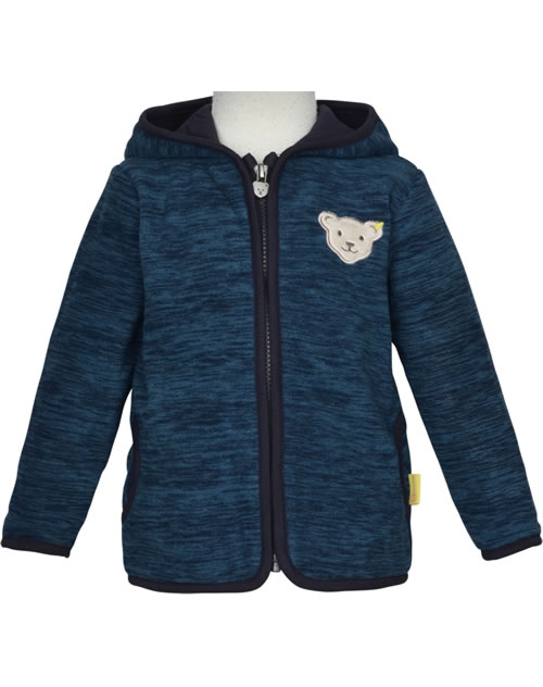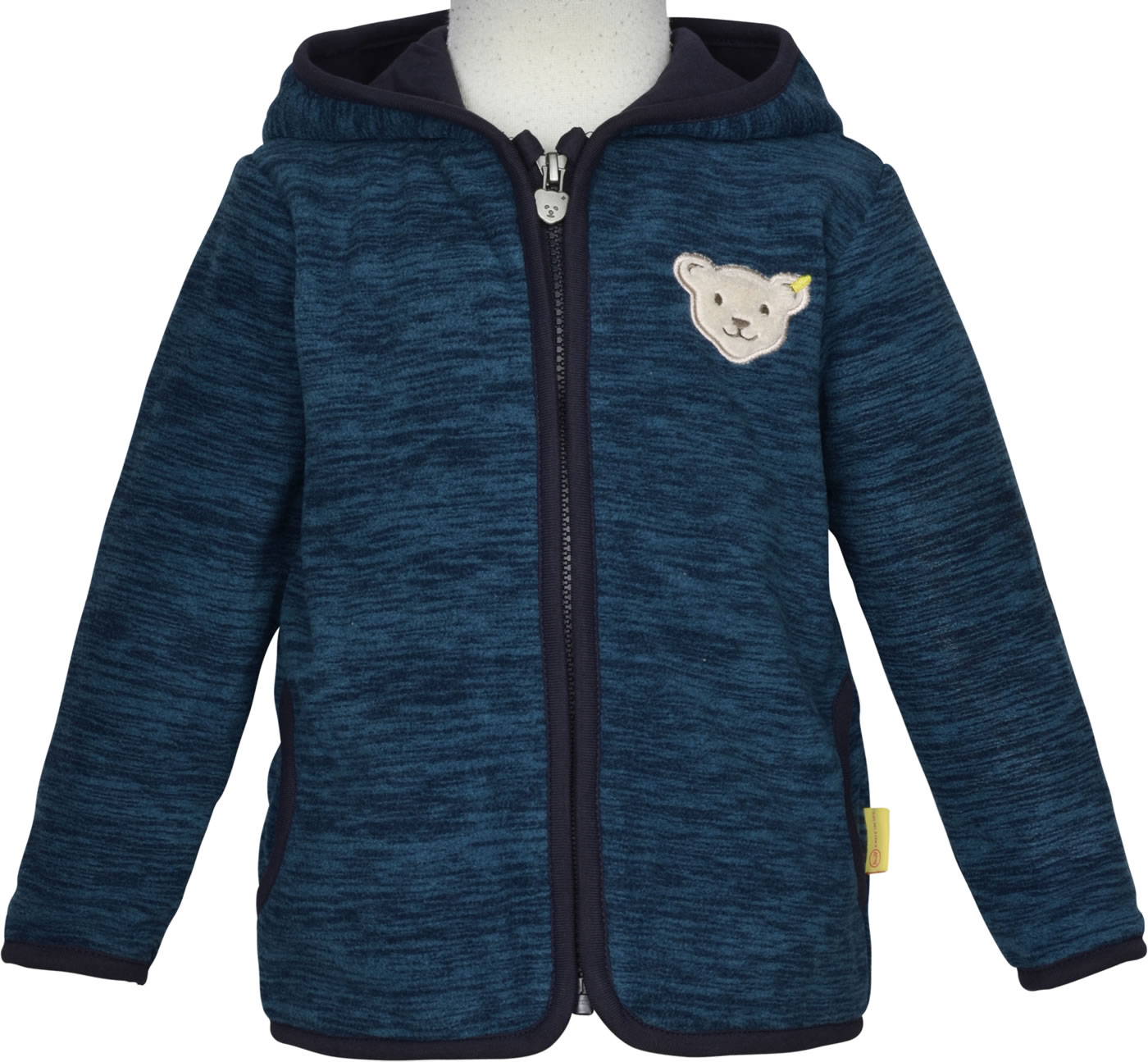 Warme, gefütterte Kapuzen-Fleecejacke für Jungen aus der Go Bear Go-Kollektion von STEIFF mit Reißverschluss und zwei Taschen. Der kleine STEIFF Bär befindet sich auf der Brust. Innen ist die Fleecejacke mit einem weichem Baumwolljersey gefüttert.