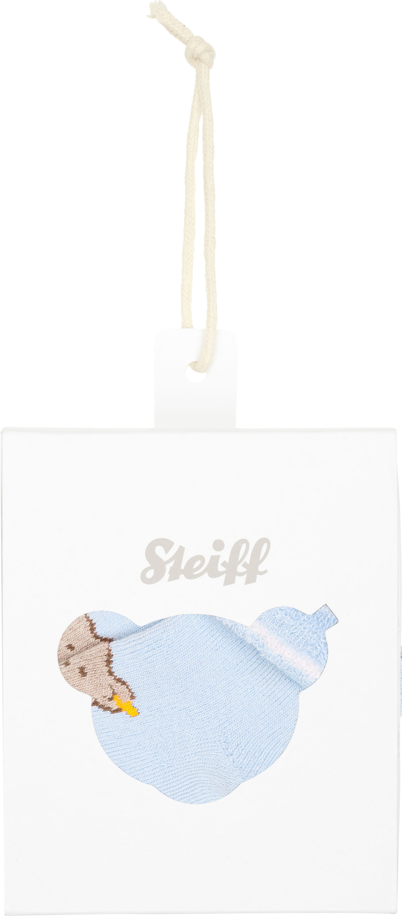 Kuschelweiche Baby-Socken in einer hübschen Geschenkgverpackung. Der kleine STEIFF Bär ziert die Vorderseite der Socken.