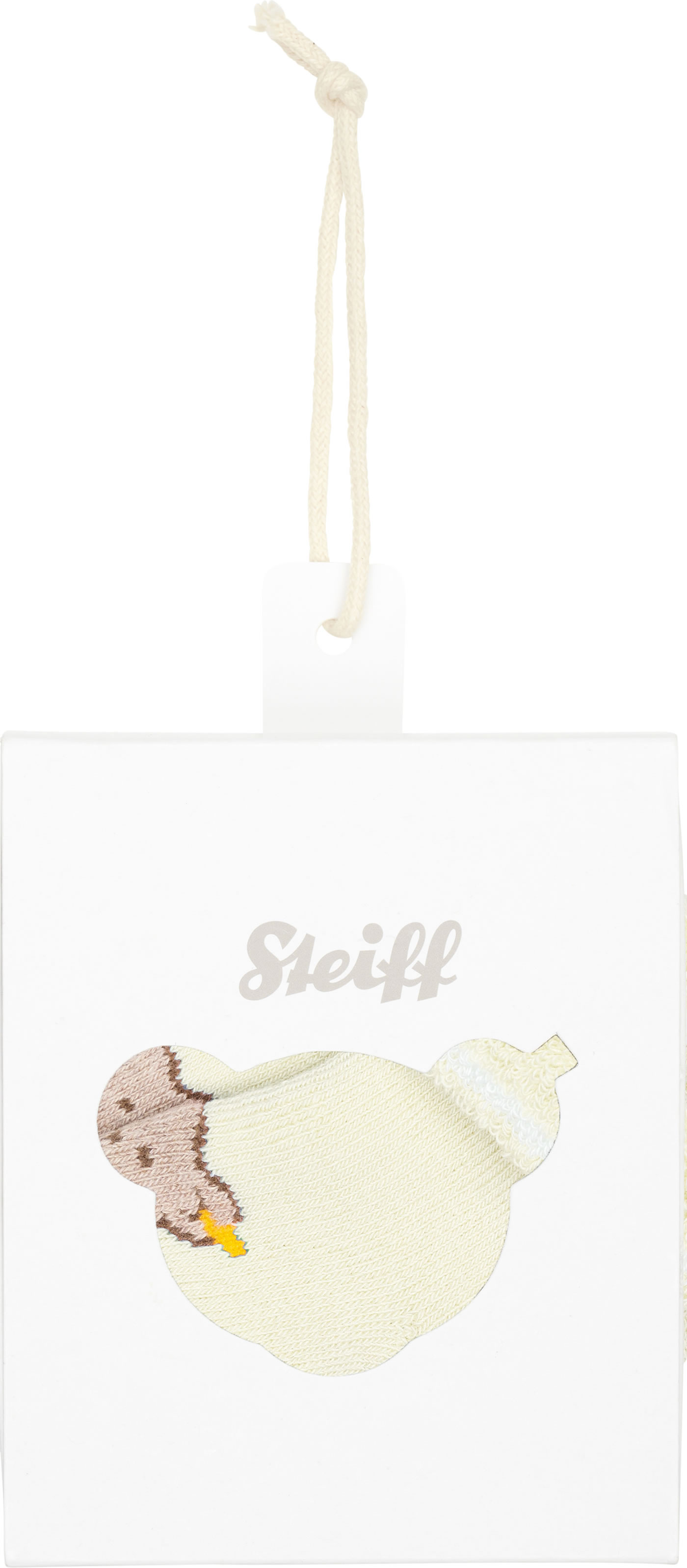 Kuschelweiche Baby-Socken in einer hübschen Geschenkgverpackung. Der kleine STEIFF Bär ziert die Vorderseite der Socken.