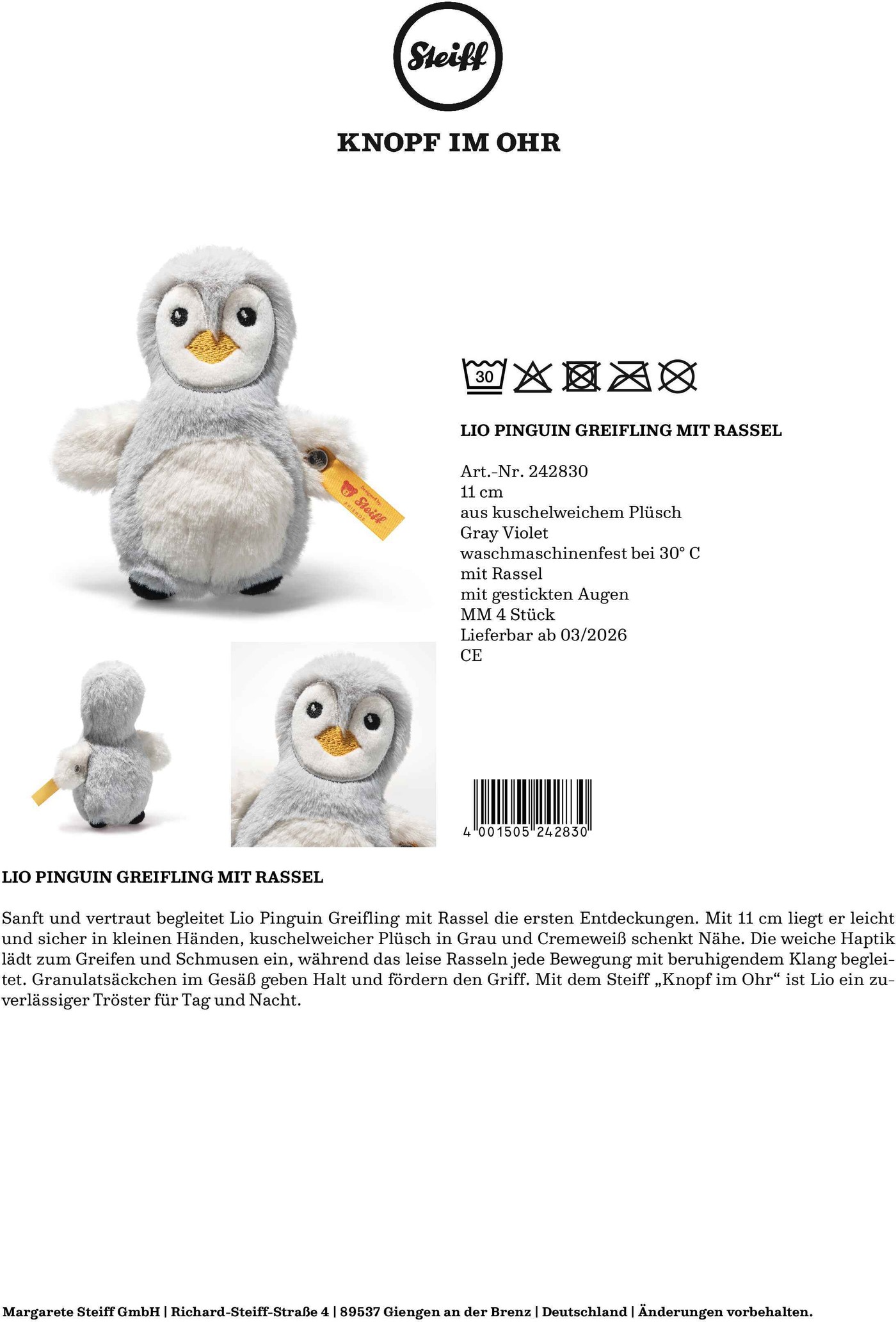 Der bekannte Steiff „Knopf im Ohr“ steht für geprüfte Qualität und macht den kleinen Pinguin zu einem treuen Begleiter durch viele ruhige und fröhliche Momente 🤗