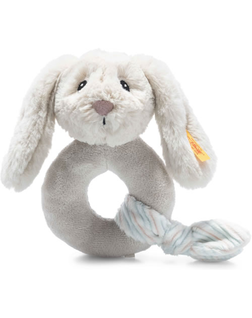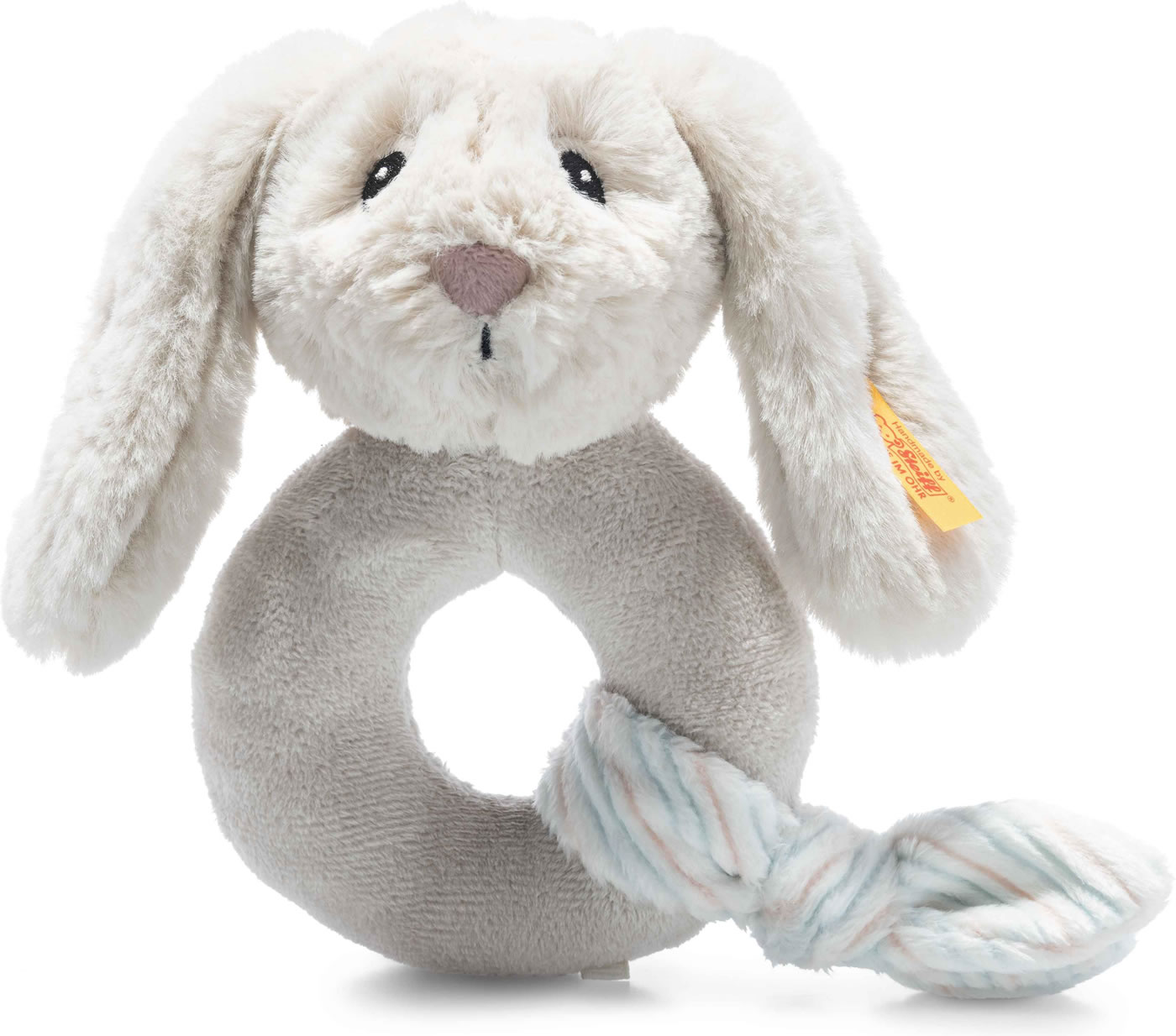 Steiff Greifling / Rassel Hase Hoppie 14 cm hellgrau