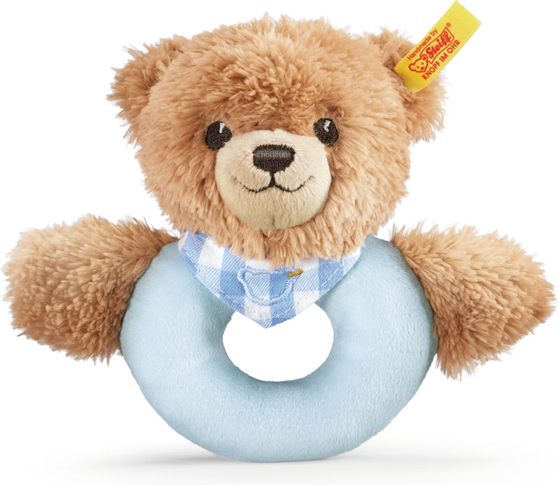 Steiff Greifring/Rassel Schlaf-gut-Bär 12 cm blau