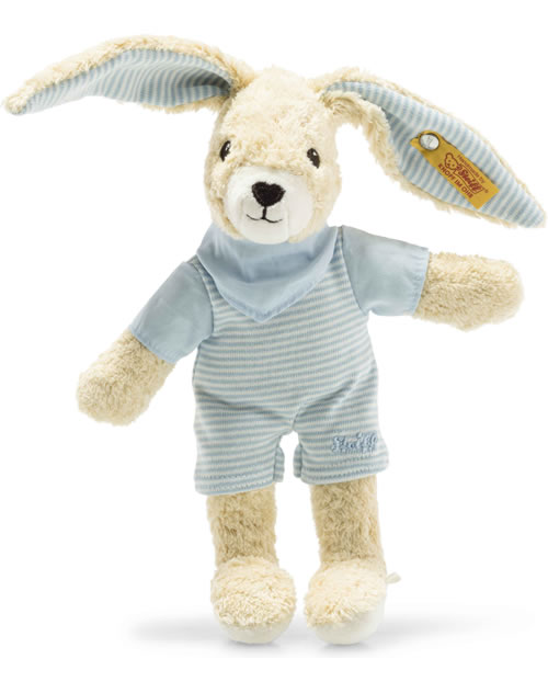 Der nette Hoppel Hase ist aus flauschiger Baumwolle, aus kontrolliert biologischem Anbau. Hoppel Hase ist ein treuer Freund für alle Babys und freut sich schon auf wilde Abenteuer. Der Anzug von Hoppel ist abnehmbar und der Hase ist super kuschelig zur Babyhaut.