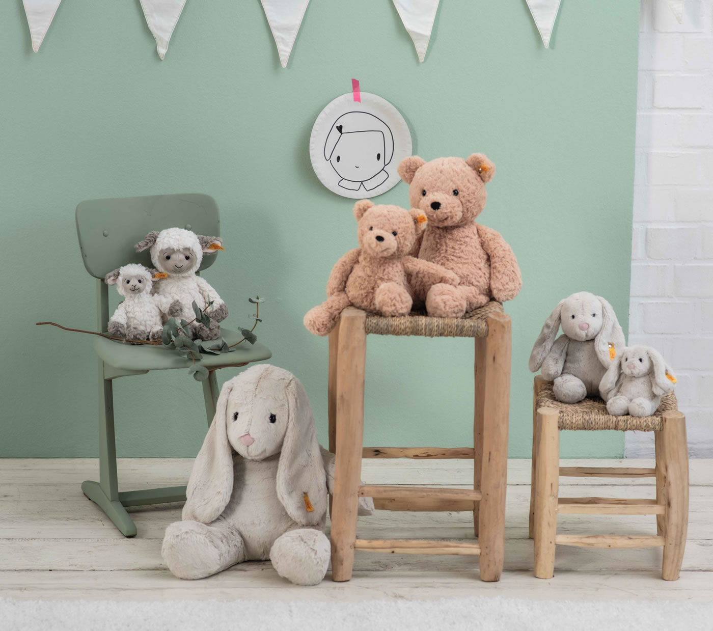 Kinderaugen leuchten, wenn Soft Cuddly Friends Hoppie Hase angehoppelt kommt. Der 48 cm große Hase mit seiner niedlichen rosa Nase und seinen überlangen Ohren ist für Klein und Groß ein liebevoller Begleiter für jeden Tag. Die eingearbeiteten Granulatsäckchen am Gesäß, den Pfoten und den Sohlen sorgen für einen sicheren Halt und laden ein zum Fühlen und Greifen. Der weiche und dichte Plüsch in zartem Hellgrau lädt zum Anschmiegen und Liebhaben ein.