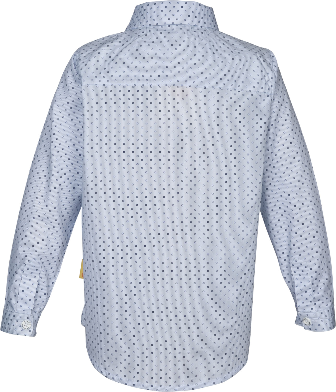 Tolles, gemustertes Hemd von STEIFF aus der Special Days-Kollektion für Jungen. Auf der linken Brusttasche befindet sich der kleine STEIFF Bär. Die dunkelblaue Fliege ist mit einem Klettverschluss zu öffnen. Der lockere Schnitt und die Baumwoll-Qualität sorgen für einen hohen Tragekomfort. Das Hemd lässt sich prima mit Chino oder Jeans kombinieren.