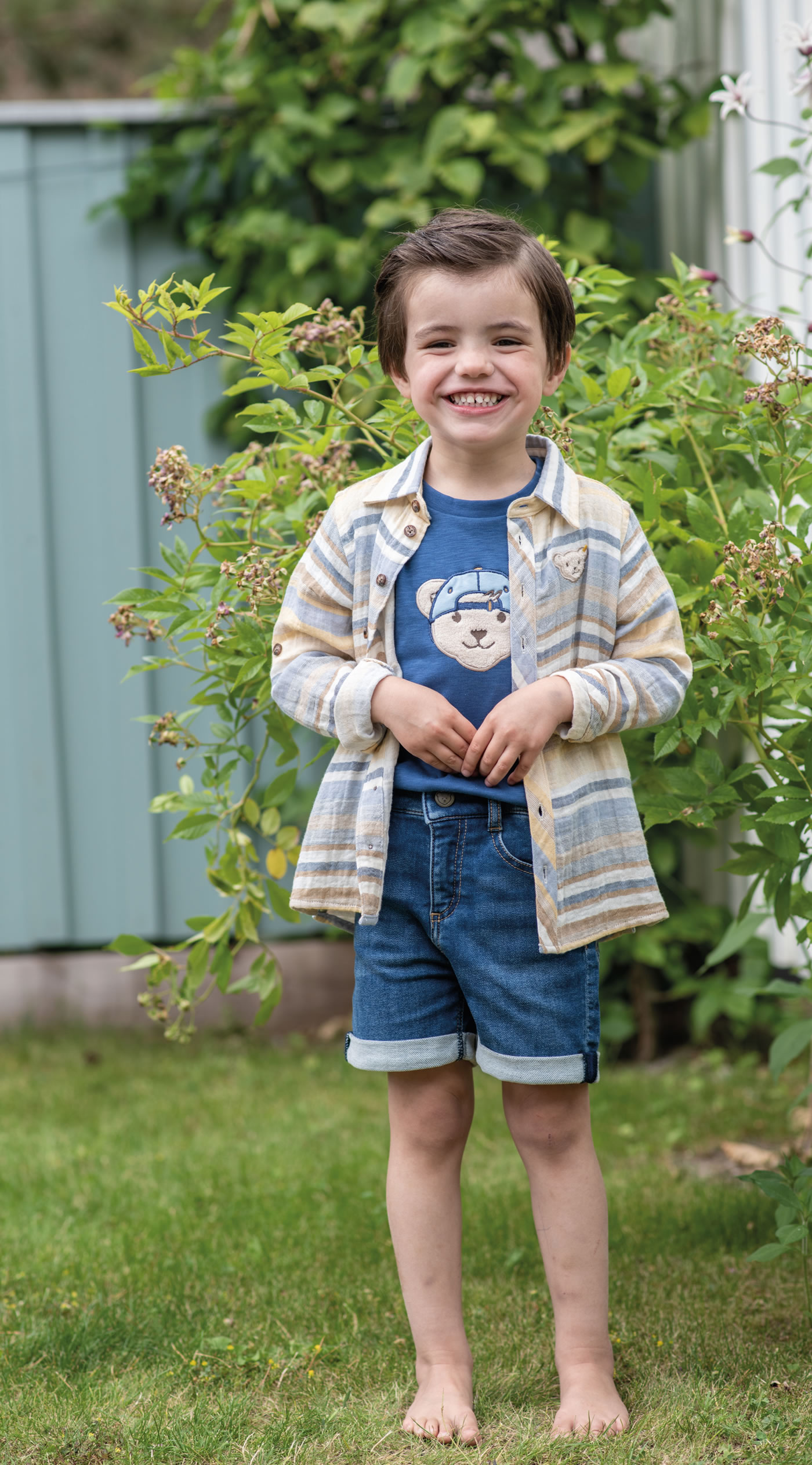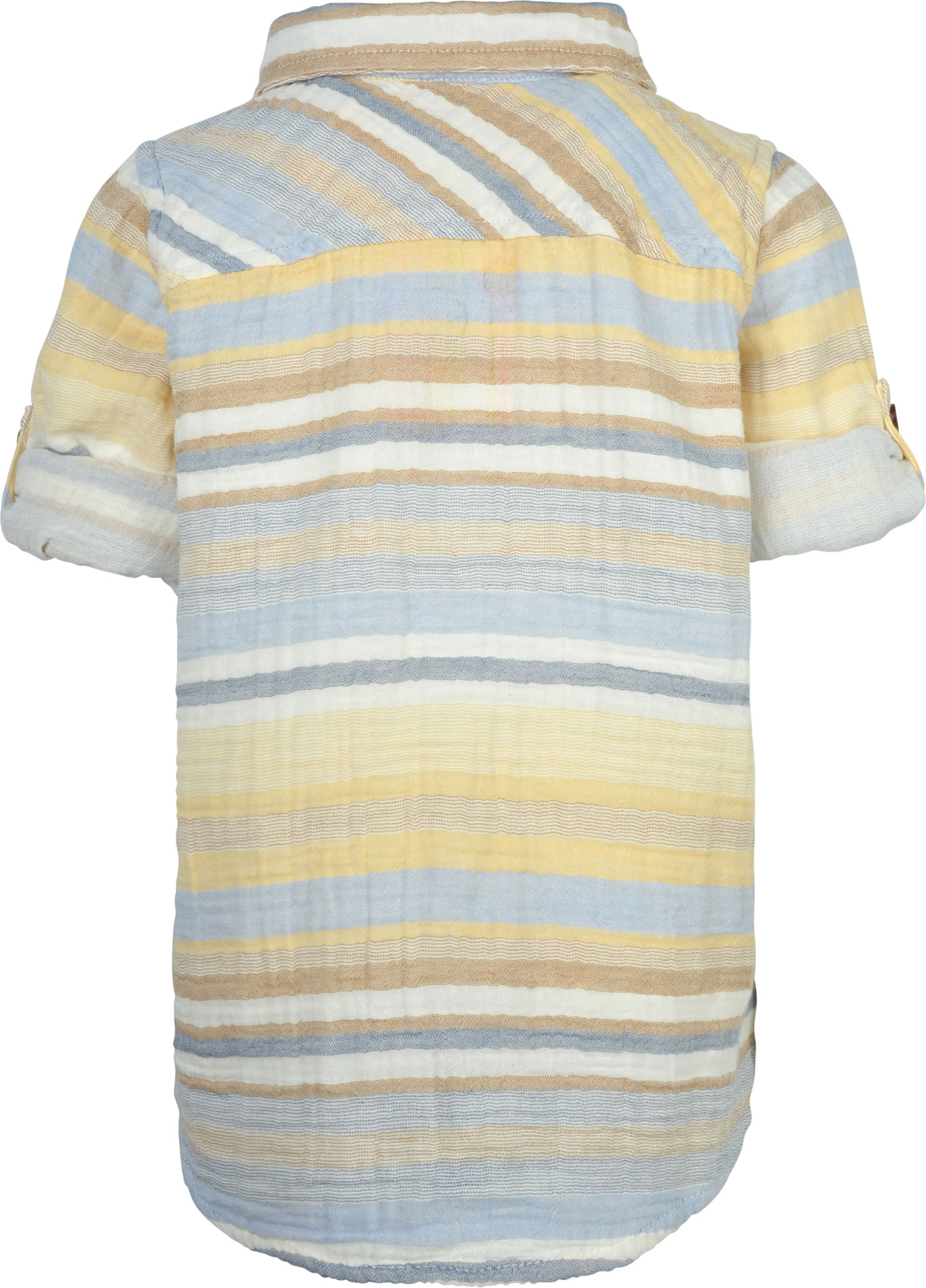 Cooles Hemd von STEIFF aus der Venice Beach-Kollektion für Jungen. Der kleine STEIFF Bär ziert die linke Brustseite. Die Ärmel kann man an wärmeren Tagen leicht hochkrempeln. Der lockere Schnitt und das weiche Material aus Musselin-Baumwolle sorgen für einen hohen Tragekomfort. Das Hemd ist auf der Rückseite etwas länger geschnitten.