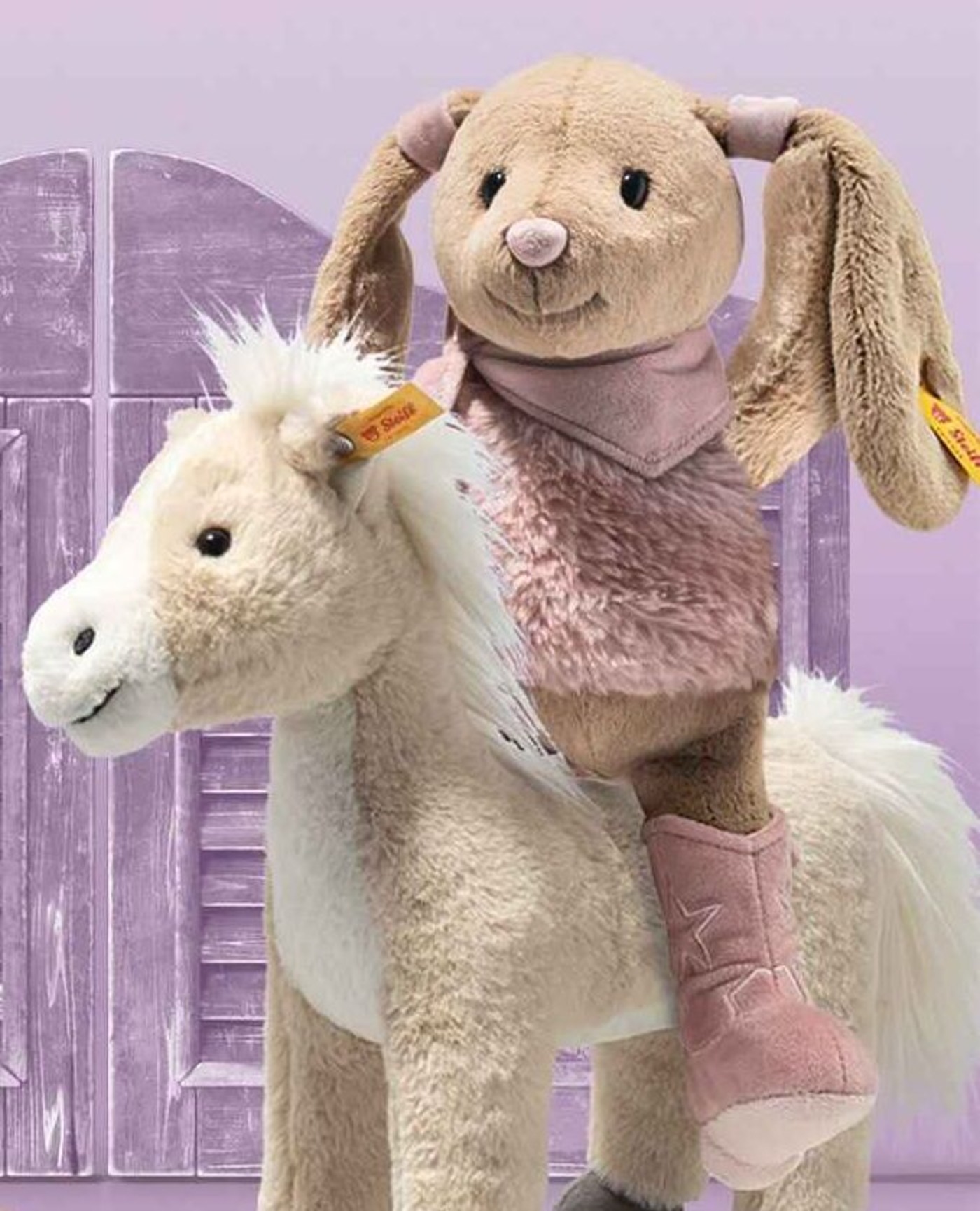 Der berühmte Steiff-„Knopf im Ohr“ begleitet Hoppie Hase Cowgirl mit auf viele Wege durch den Wilden Westen. 🙂