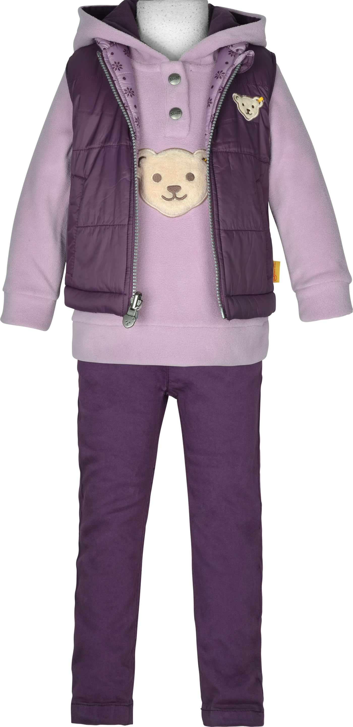 Kombinationsempfehlung: Auf dem Detailbild zusammen mit den Artikeln Steiff Kapuzen-Sweatshirt m. Quietsche NATURAL BERRY lavender mist 1921221-7020 LAVENDER MIST (St19212217020) und Steiff Wende-Weste Bionic Finish NATURAL BERRY lavender mist 1921202-7020 LAVENDER MIST (St19212027020).
