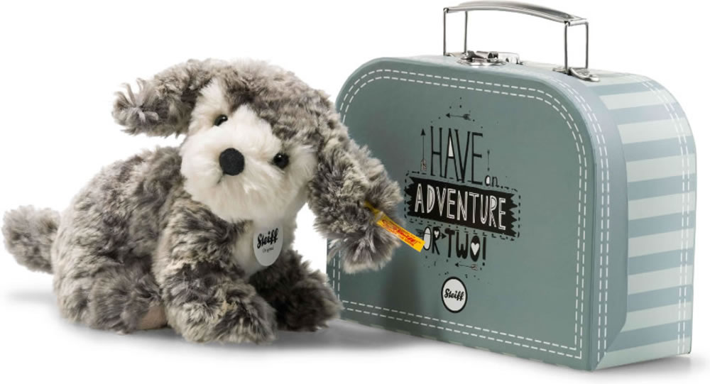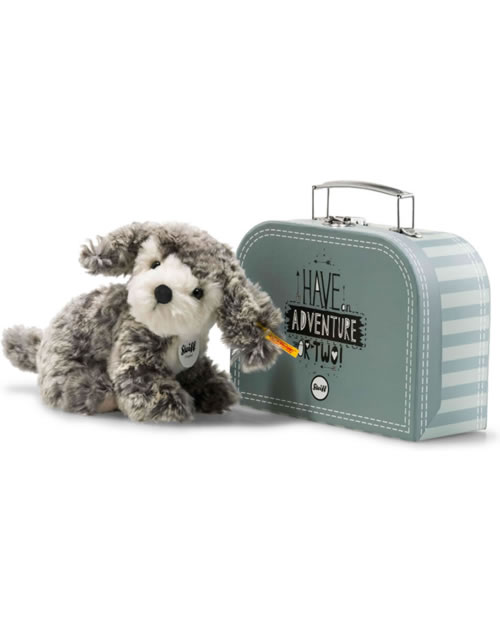 Steiff Hund Matty im Koffer 12 cm grau/beige sitzend 079160