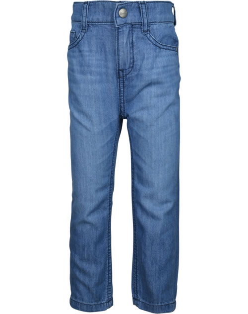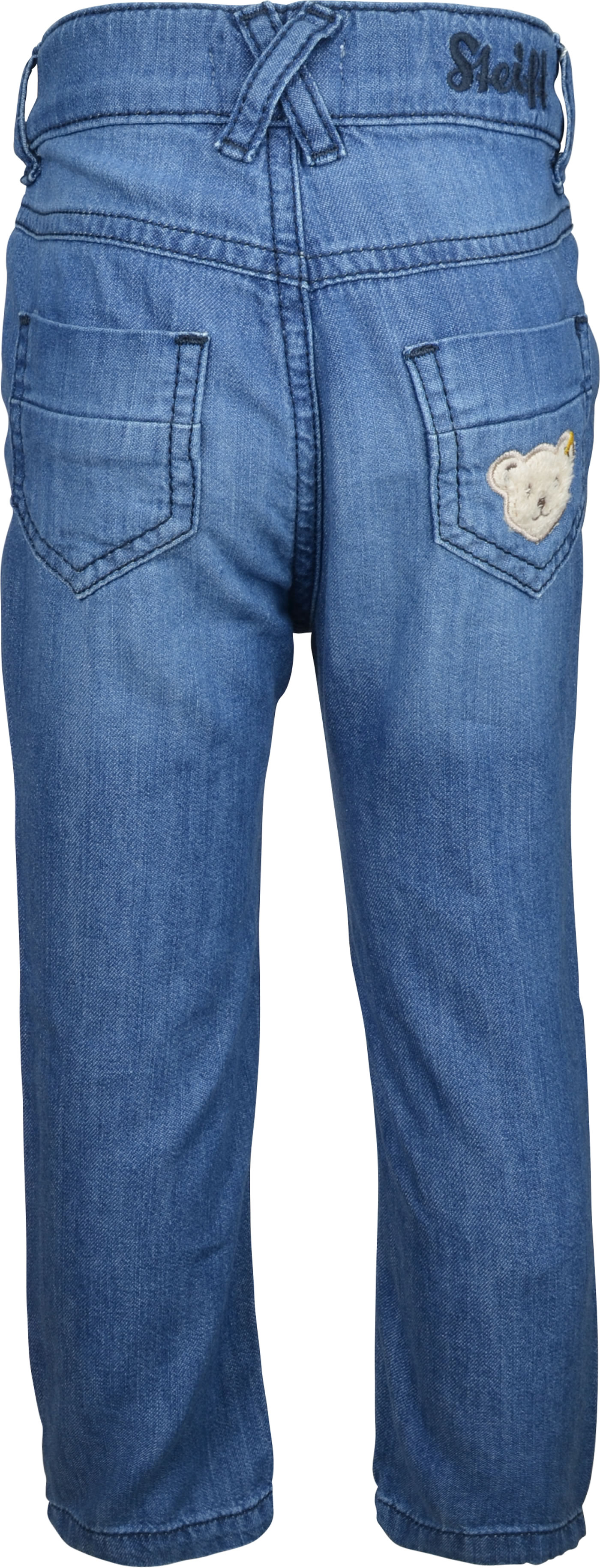 Leichte Jeans für Jungen aus der Sea Bear-Kollektion von STEIFF. Zwei Einstecktaschen befinden sich auf der Vorderseite und zwei Taschen auf der Rückseite, auf der sich auch der kleine STEIFF Bär befindet. Der Hakenverschluss erleichtert das An- und Ausziehen und der verstellbare Gummibund sorgt für ein gutes Tragegefühl.