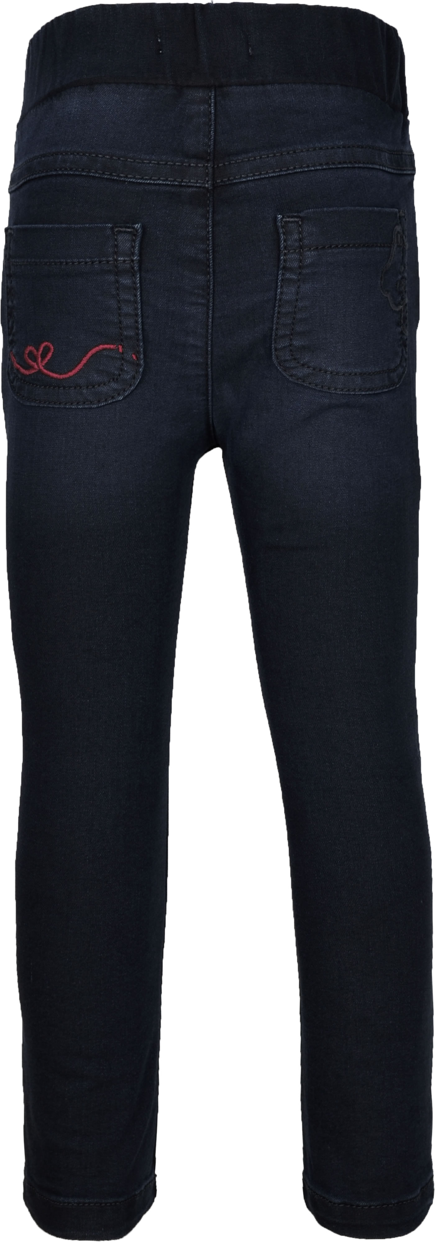 Hübsche Jeggings aus weichem Denim für Mädchen von STEIFF aus der Bear to School Kollektion. Dank des Gummizugbundes sitzt die Hose sehr bequem. Vorne und hinten befinden sich je zwei Taschen für Kleinigkeiten. Auf der linken Gesäßtasche ist eine rote Verzierung gestickt. Der Steifbär befindet sich auf der linken.