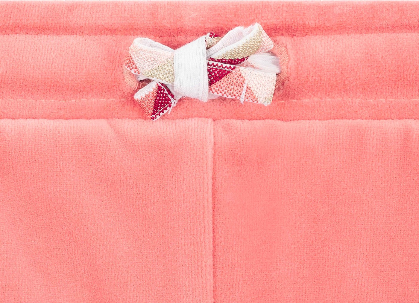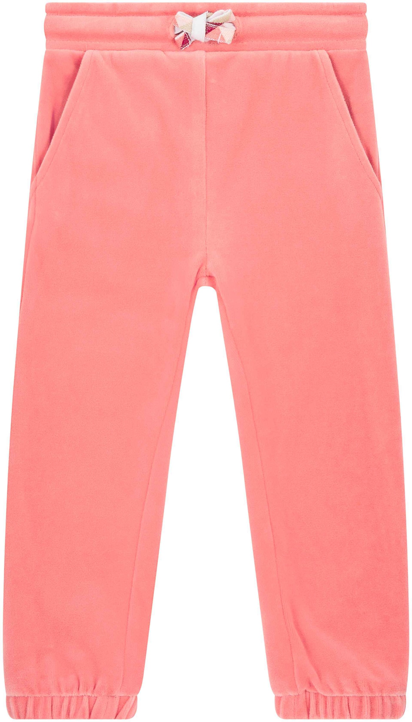 Das zarte Rosa verleiht der Hose eine mädchenhafte Note, während das farblich abgesetzte Bindeband für einen verspielten Akzent sorgt.