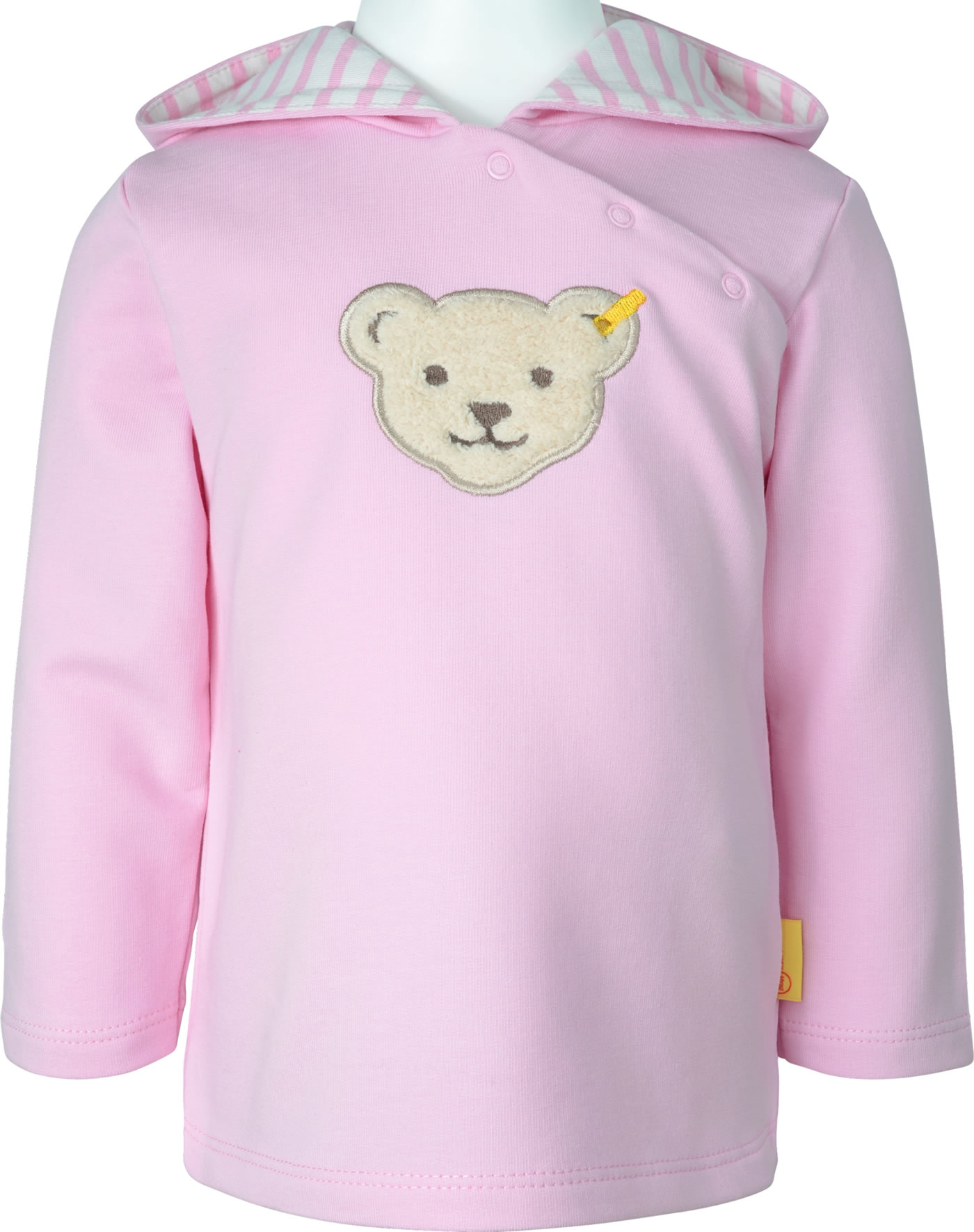 Sweat-Shirt mit Kapuze aus der Beach Please-Kollektion von STEIFF für Mädchen. Schöne Details sind der STEIFF Bär auf der Vorderseite und das gestreifte Futter der Kapuze. Drei Druckknöpfe auf der Vorderseite erleichtern das An- und Ausziehen. Die Rückseite ist etwas länger geschnitten.