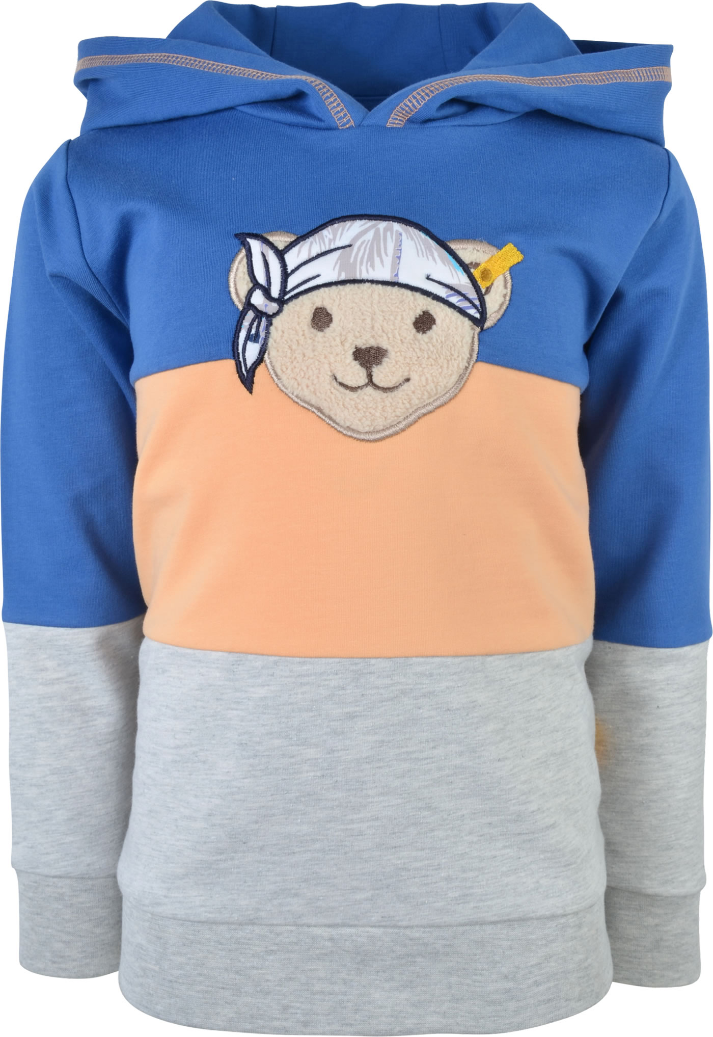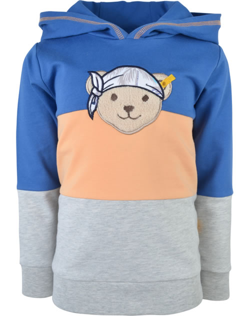 Tolles Sweatshirt mit Kapuze aus der Happy Hippo-Kollektion von STEIFF für Jungen. Ein toller Hingucker ist die STEIFF Bär-Applikation auf der Brust. Die Blockstreifen in royalblau, peach und grau sorgen für einen coolen Look. Die Rippbündchen sorgen für einen perfekten Sitz.