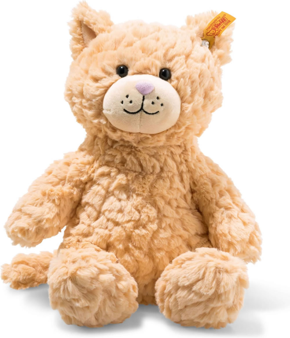 Zuckersüß kommt Whiskers Katze um die Ecke. Ihr apricotfarbener, kuschelweicher Plüsch glänzt in der Sonne. Der lächelnde Mund und die Bartstoppeln sind in Schwarz gestickt. Dazu passt die niedliche rosa Nase. Farblich in hellerem Orange abgesetzt sind die Innenohren und die Mundpartie. Die eingearbeiteten Granulatsäckchen im Gesäß, den Pfoten und Sohlen sorgen für einen guten Halt. Mit ihren 28 cm kann man Whiskers Katze ganz prima in die Arme schließen.