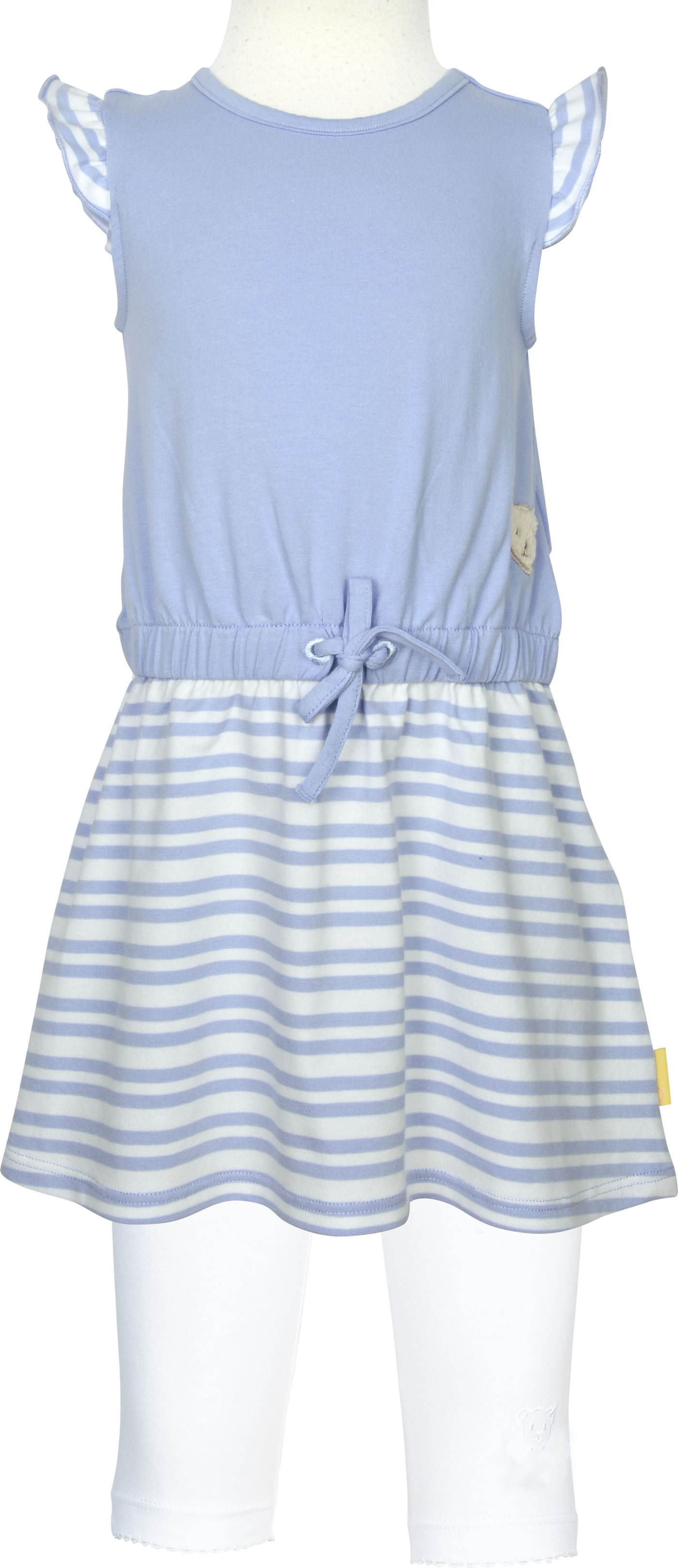 Hübsches Kleid von STEIFF aus der Hello Summer Kollektion. Das leichte Sommerkleid aus Baumwoll-Jersey ist ideal bei sommerlichen Temperaturen. Das Gummibündchen in der Taille sorgt für einen guten Sitz. Schöne Details sind die gestreiften Flügelärmel und der kleine STEIFF Bär auf der Vorderseite.